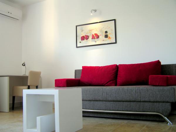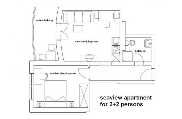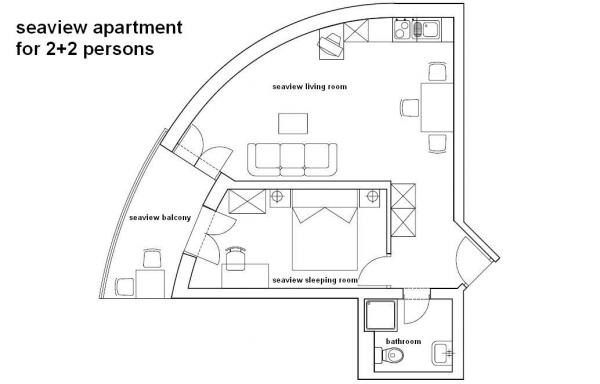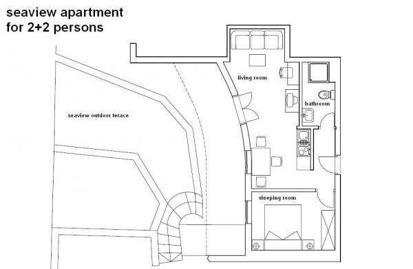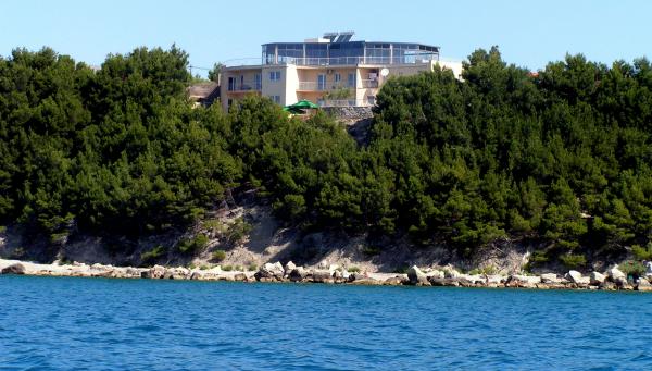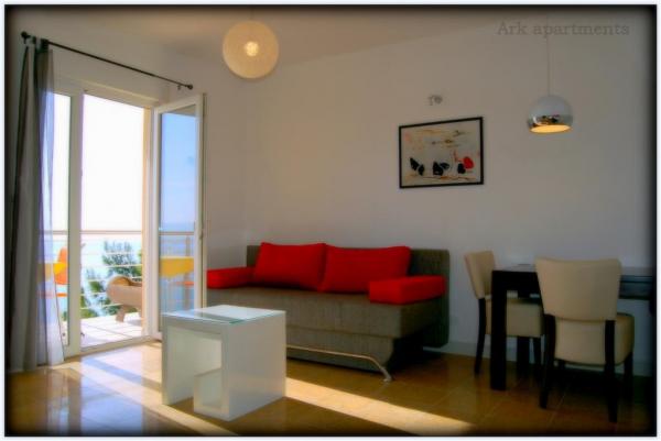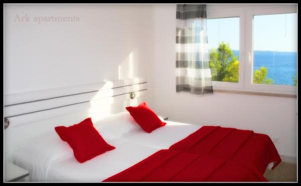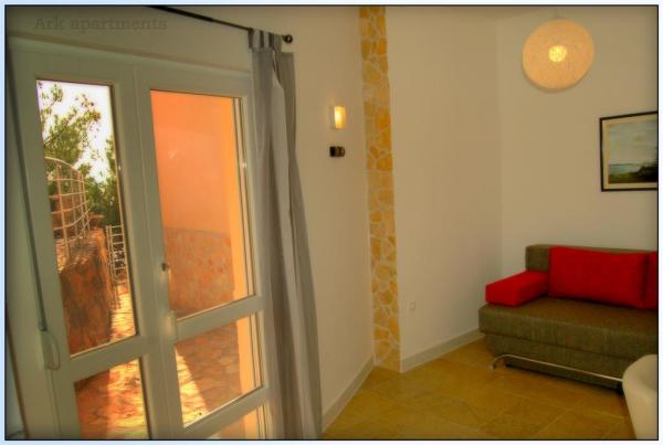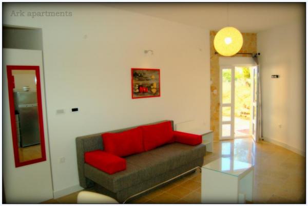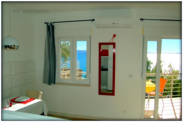 Ark apartments are situated on a cliff above the crystal clear Adriatic Sea (10 mdistance from the sea). Surrounded by the forest and the sea, they provide an idealsetting for a peaceful and relaxing holiday, disturbed only by the sound of the waves. 13 stylishly designed suites and one double room can accommodate up to 48 guests, and are categorized with 4 stars. Apartments for 2 or 2 + 2 persons are equipped with a double bedroom, a spacious living room with sofa bed, bathroom, kitchen with dishwasher, and a balcony with a spectacular view of the sea and the Dalmatian islands. Each apartment has air conditioning, a large LED smart TV with satellite channels from which you can access free internet services (Gmail, Facebook, YouTube, Skype, etc.), free Wi-Fi and free private parking.