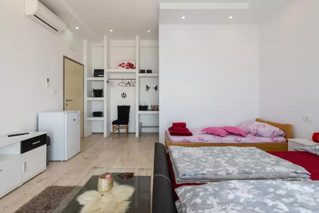 Here we are now 20+ years later and his legacy Super Horizont is hosting people from all around the world. House is situated in very quite and nautral erea with spectacular view on the Sea . On the ground floor you first meet the reception, on the 1. floor are 3 apartments and on the 2 floor 4 room. Our big terase is very welcome for all our guest, with chairs to rest, tables and BBQ area to enjoy wirt your family , and free parking for all the guests. In the uptown of Stobrec, close to the beach, which can be accessed via a footpath, just a stone’s throw from the property. It has breath taking sea views over the Adriatic, overlooking the popular islands like Hvar, Brac and Vis. With personable 24/7 staff and hosts living in the house Super Horizont plugs that gap between large hotels and traditional seaside guest houses.