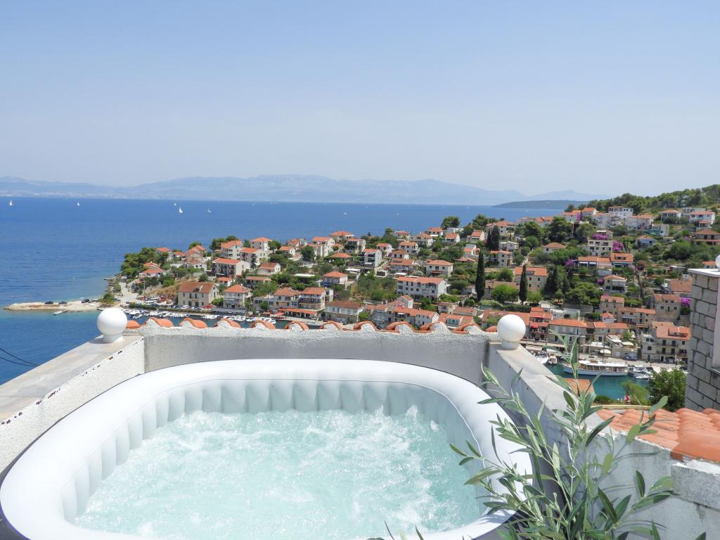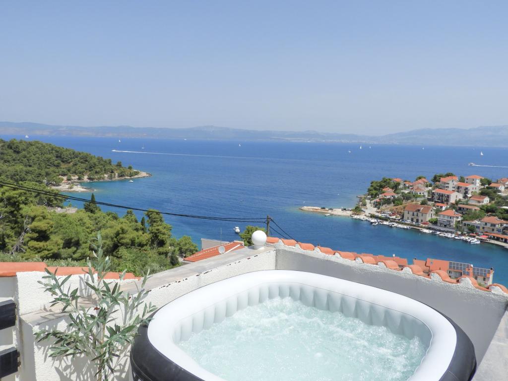 The stone house IVO is located in a landscaped olive grove, on a viewpoint, above the town of Stomorska. The IVO house offers an exceptional view of the coves, beaches, the town and port of Stomorska, the panorama and water area of the city of Split and its surroundings, and parts of the islands of Brač and Čiovo. The most significant features of the house are the unique view, spaciousness and peace. The nearest neighbors are 30 m away. The house is 800 m from the center of Stomorska by road, and 400 m on foot. There are 2 apartments on offer: - Sun apartment with outdoor jacuzzi (2+1 persons) - SEA apartment (4+1 persons). The apartments are each on their own floor. There is also the possibility of renting both apartments (6+2 persons). The guests of both apartments have free of charge: - secured parking spaces for 3 vehicles - stone barbecue with a table in the garden - outdoor shower - laundry room There is a possibility of machine laundry service (€10/per wash) and/or machine dishwashing service (€5 / after washing). The hosts are happy to help you with any questions at any time.