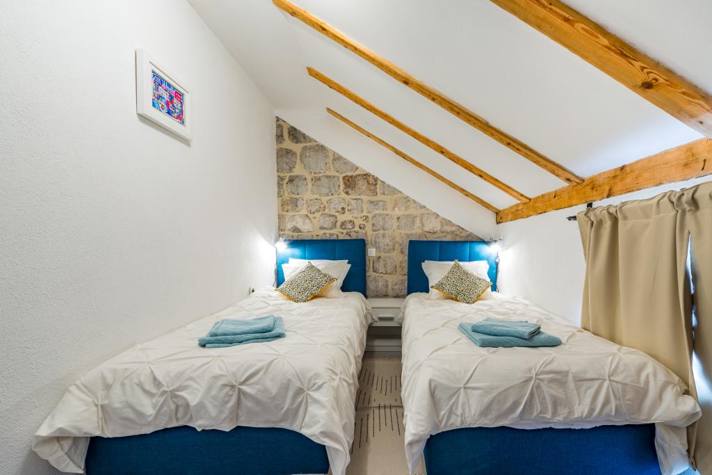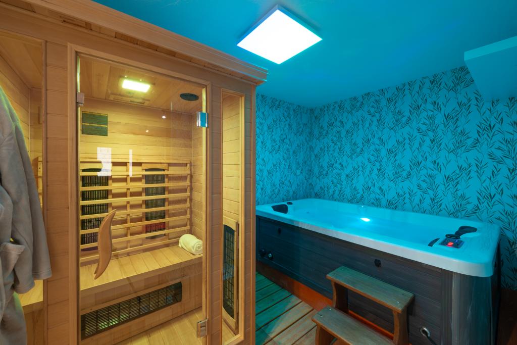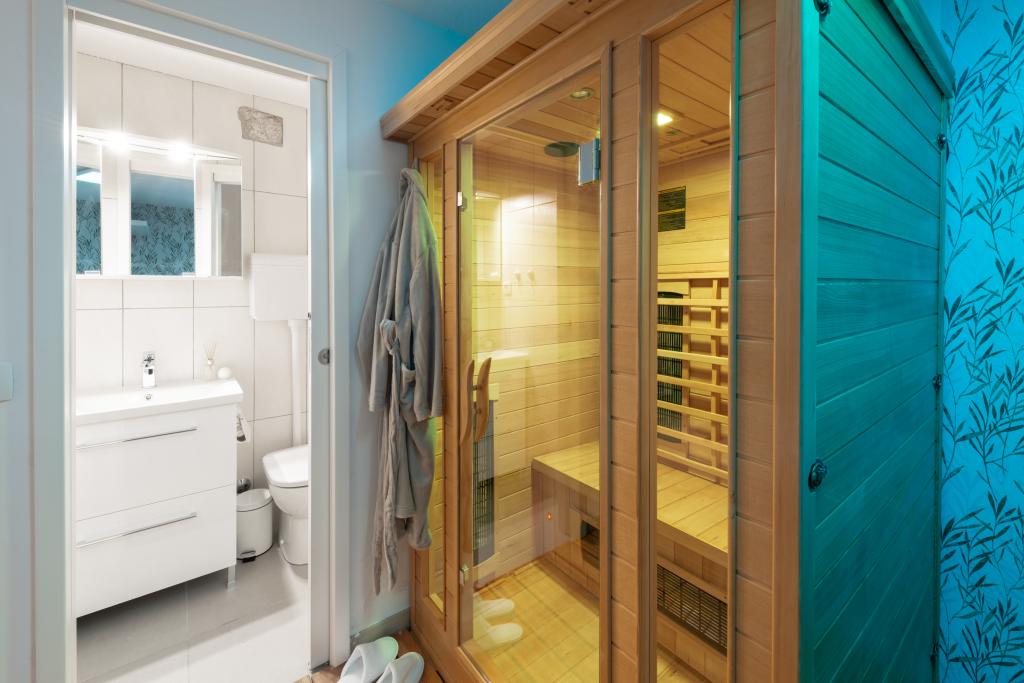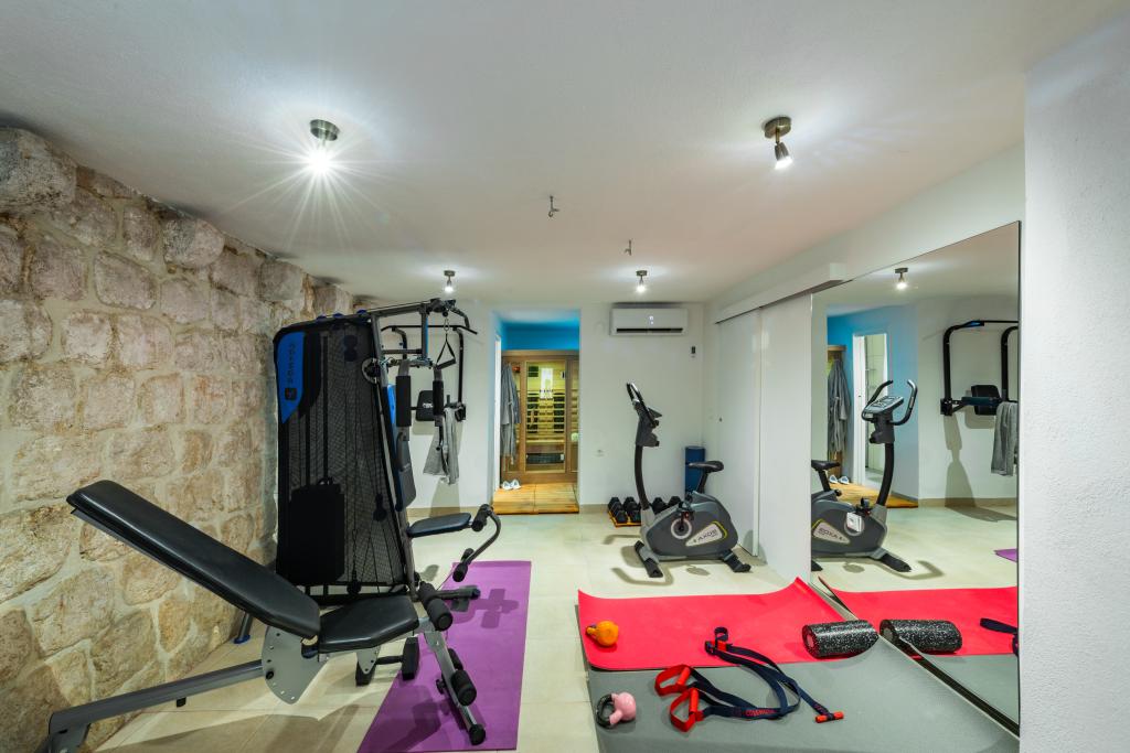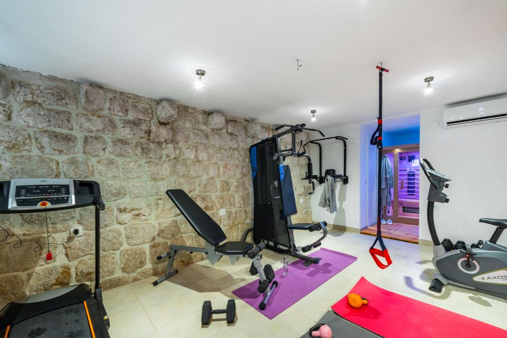 This beautifully decorated rustic traditional villa has been recently renovated, has a private entrance and covers 100 square meters of living space for your private use only, can accommodate 4 people in the rooms and one person on an extra bed in the living room. On the ground floor you have a wellness center at your disposal, which includes a fitness room / gym, infrared sauna and jacuzzi / hot tub for your complete relaxation. The bathroom is next to the gym. On the first floor there is a living room with a flat-screen Smart TV (+ maxTv stream channels), a dining room, a fully equipped kitchen and a toilet. The second floor consists of 1 bathroom and 2 bedrooms: Bedroom 1 - Two single beds Bedroom 2 - Two single beds - The bathroom contains a washing machine and a dryer - Iron, ironing board - Air conditioning in the living room / dining room, each bedroom and the gym / fitness room - The bathrooms, the fitness / gym and the sauna / jacuzzi area are equipped with underfloor heating