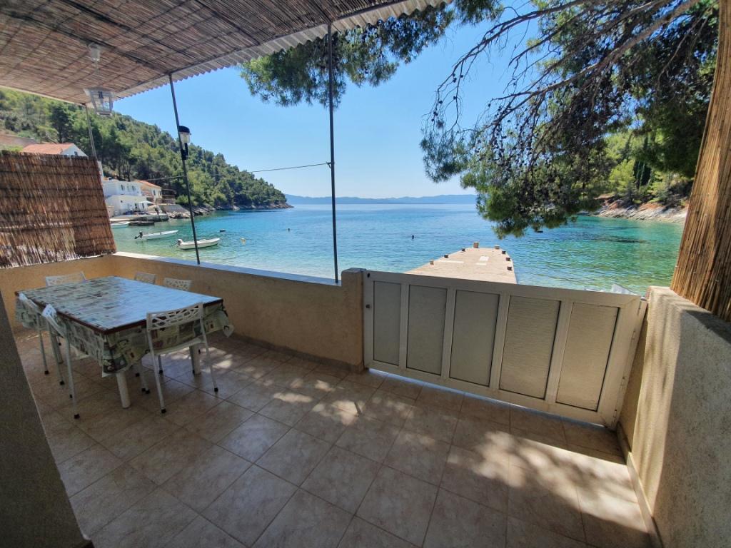 House Sandra is located in a quiet bay Pelinovik, in the village Bogomolje. Bogomolje is located 15 km west of Sucuraj. Pelinovik Bay is about 3 km away from Bogomolje. The house in the bay is located on the beach. The house has two floors and has a total of 70m2. On the first floor there is a kitchen and living room, while on the second floor there are three double bedrooms and a bathroom. There is a chimney in the back of the house. Parking is provided! The bay has no electricity and water, so we use alternative energy sources. Electricity is obtained through solar panels (power 12V). It has the possibility of charging mobile phones and other 220V devices, but it must be used in a limited way, so as not to exhaust the system and run out of energy. The water is rainwater, and is available throughout the house and we have hot water.