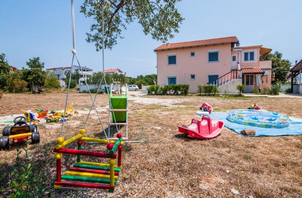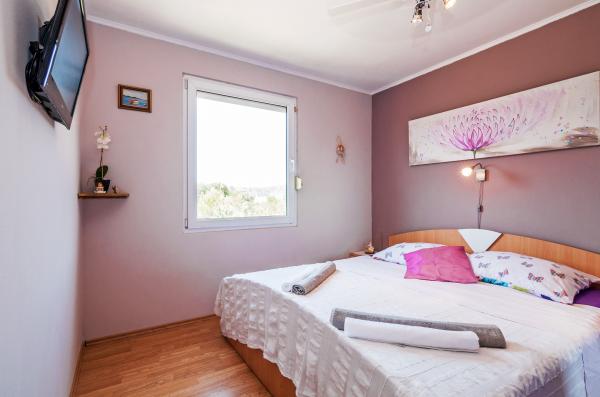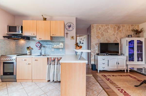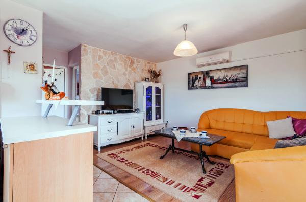 Apartment Adriana is a new, comfortable two-bedroom apartment, 60m2, for 4 people, one room with a double bed, one with twin beds, a spacious living room and adjoining kitchen and balcony. The apartment is located on the first floor of the house, in a quiet and unspoiled part of Sukosan, far from the beach of the bay Golden Luka, surrounded by olive trees, pines and holm oak trees. Located along the coastal belt of the indentedness, provides a wide range of customers, from numerous hiding places to the well-kept beaches with a wide range. The area around the house is very big and the road is far enough for children to play uninterrupted. Adults without can spend their free time on the summer verandah with meals or appropriate socializing. The wealth of regional and local Touristic offer is reflected in the culinary, cultural and entertainment components through a number of events in Sukosan and tourist cents Zadar and Biograd as visits to nearby national parks.