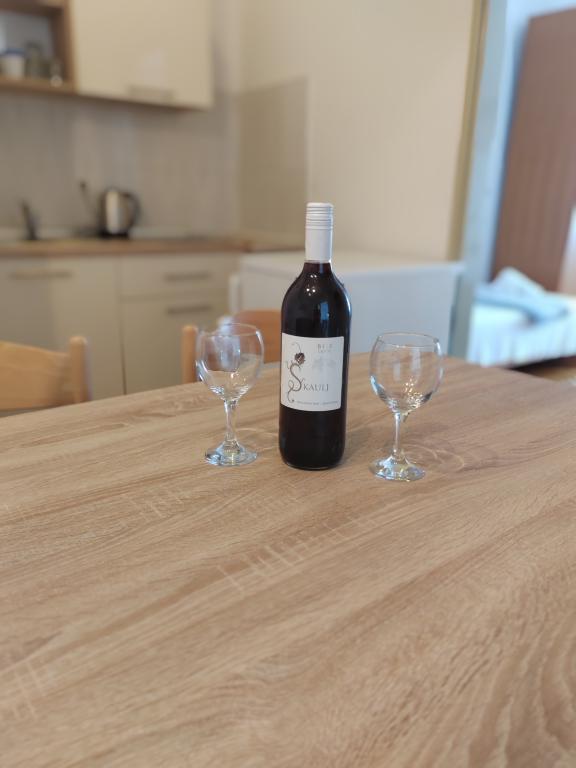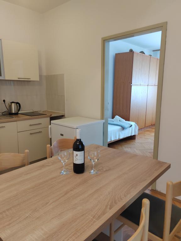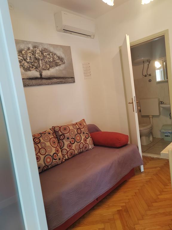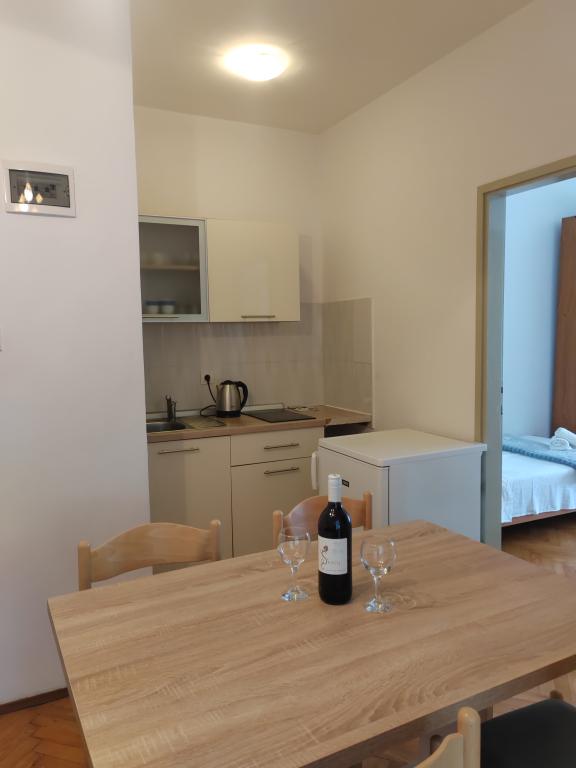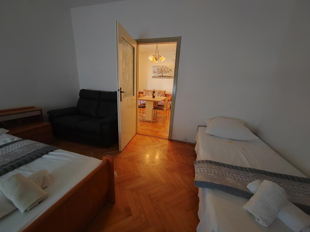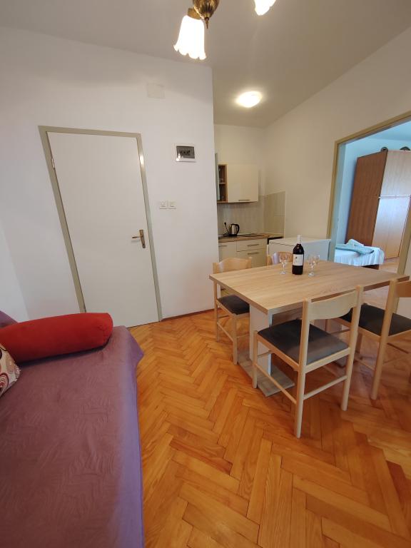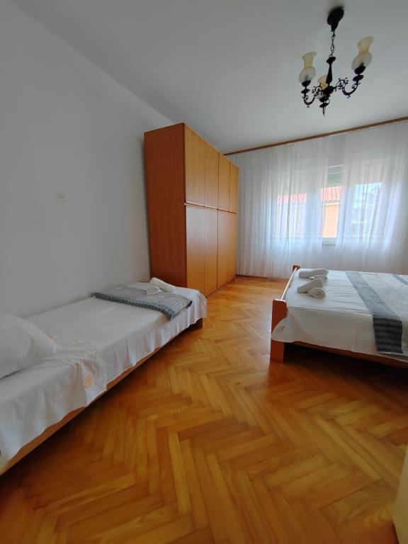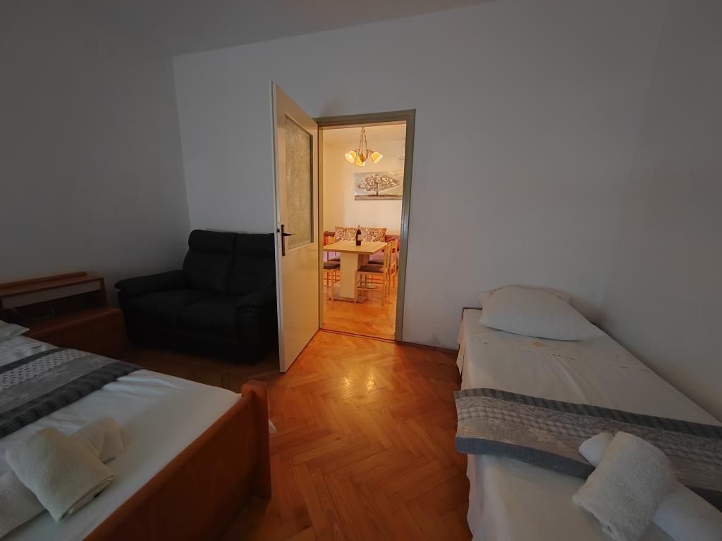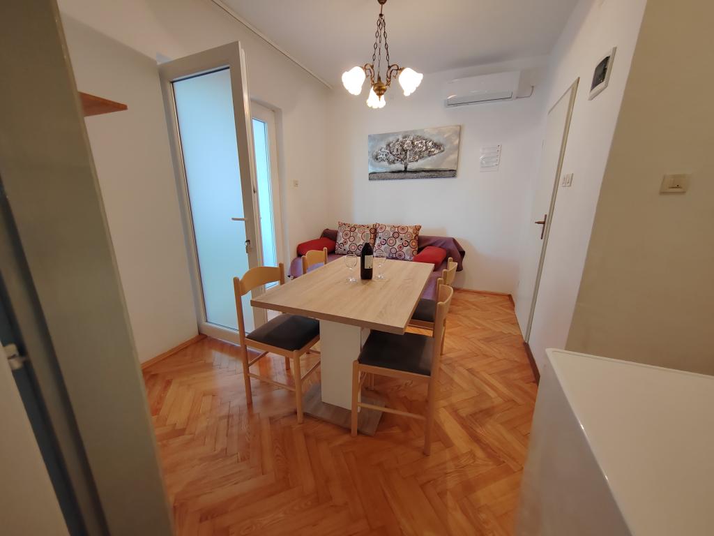 In a quiet part of Sukošan, this one-room apartment of 40m2 is located, with this indicated privacy because there are no other apartments for rent in the house. The owner lives on the opposite side. The apartment has its own separate entrance, right next to its own parking space, a few steps lead you across the terrace to an apartment with one bedroom, a small dining room with a kitchen and a sofa bed. The spacious bedroom has a double bed 180x200 and a bed for one person.