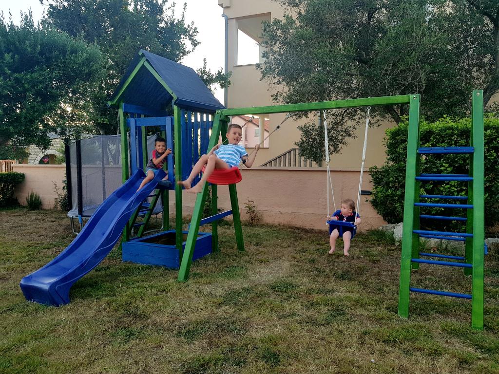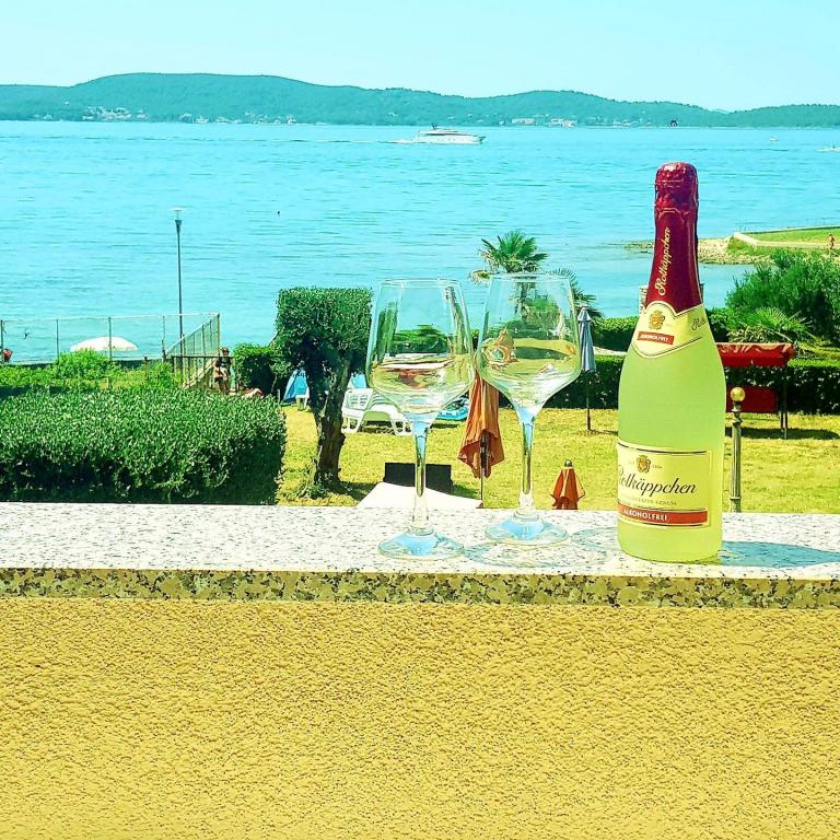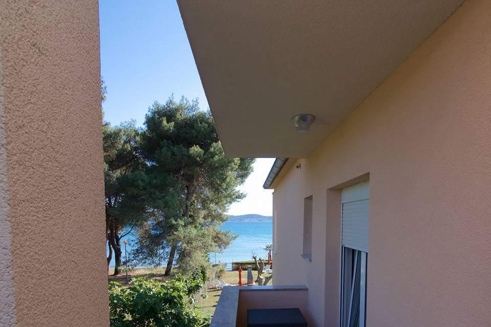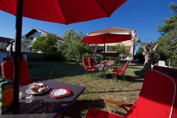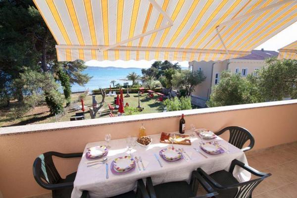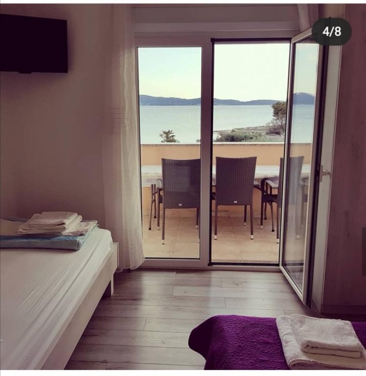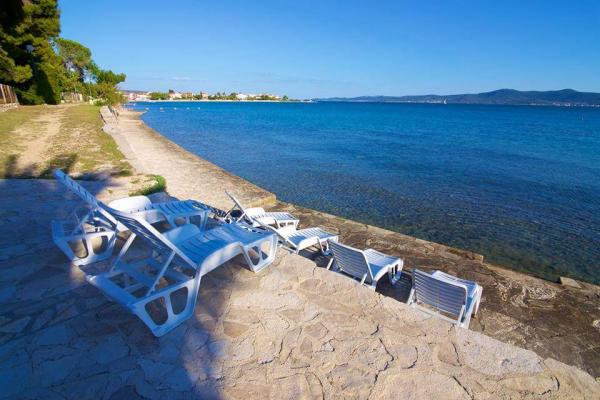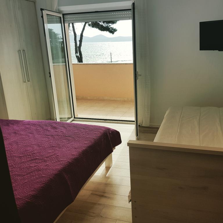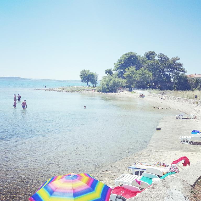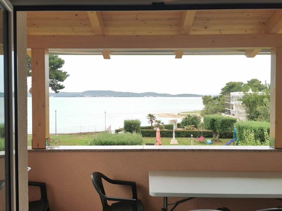 The first row to the sea, modern newly decorated apartments, from the large yard is a direct exit to the beach. The yard is large with lots of greenery, sunshades, sun loungers, swings, slide, children's trampoline, table, chairs and grill. The beach in front of the house is beautiful, sandy is especially great for children because there are plenty of shallows in the beginning. The beach is sheltered from the wind compared to other beaches in Sukosan and within the main beach Djeci raj. Distance to the center of Sukosan is 5 minutes on foot. the apartments are new, the kitchens are equipped with all utensils, cooking and cutlery, clean bed linen and towels, mosquito nets, water cookers. all apartments have internet, tv / satellite. Taxes and parking are included in the price. The use of air conditioners is charged 7 euros per day, so you do not pay if you do not use it. For a dog or big dog we charge an additional 7 euros per day for the cost of cleaning the apartment.
