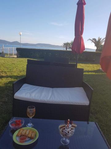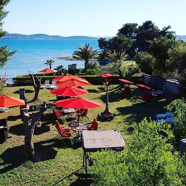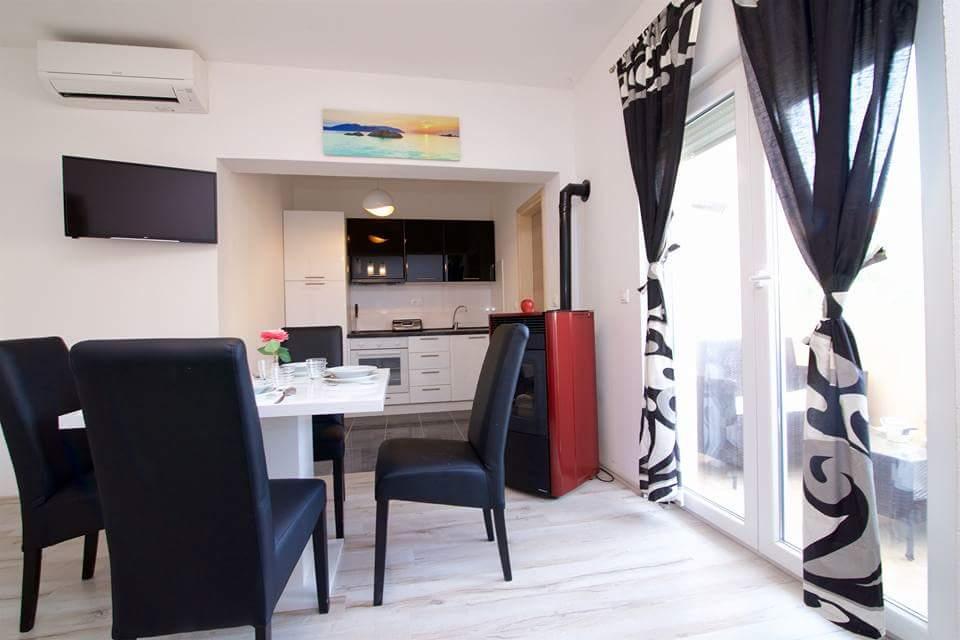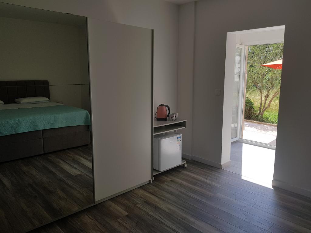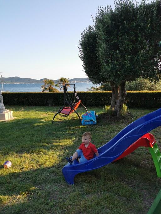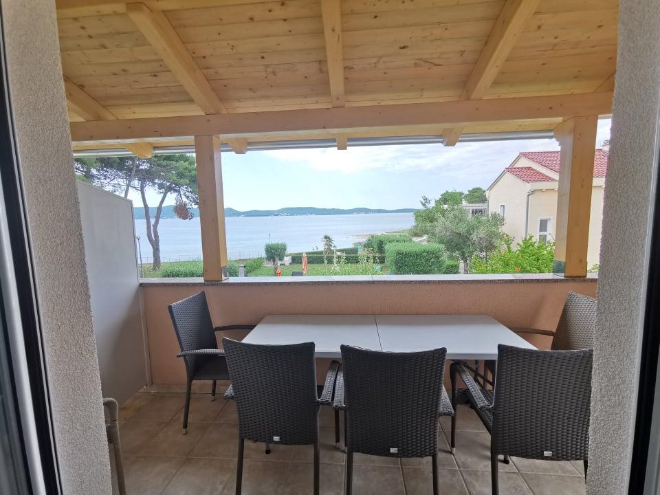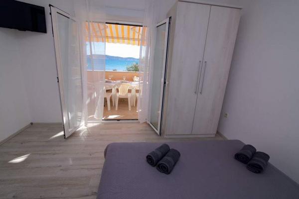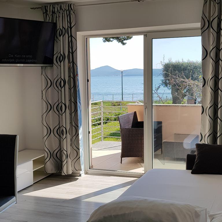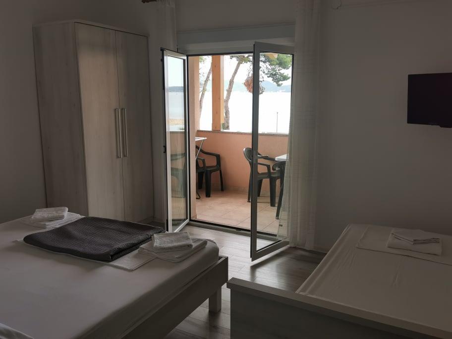 The first row to the sea, modern newly decorated apartments, from the large yard is a direct exit to the beach. The yard is large with lots of greenery, sunshades, sun loungers, swings, slide, children's trampoline, table, chairs and grill. The beach in front of the house is beautiful, sandy is especially great for children because there are plenty of shallows in the beginning. The beach is sheltered from the wind compared to other beaches in Sukosan and within the main beach Djeci raj. Distance to the center of Sukosan is 5 minutes on foot. the apartments are new, the kitchens are equipped with all utensils, cooking and cutlery, clean bed linen and towels, mosquito nets, water cookers. all apartments have internet, tv / satellite. Taxes and parking are included in the price. The use of air conditioners is charged 7 euros per day, so you do not pay if you do not use it. For a dog or big dog we charge an additional 7 euros per day for the cost of cleaning the apartment.