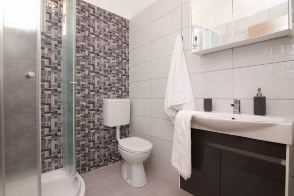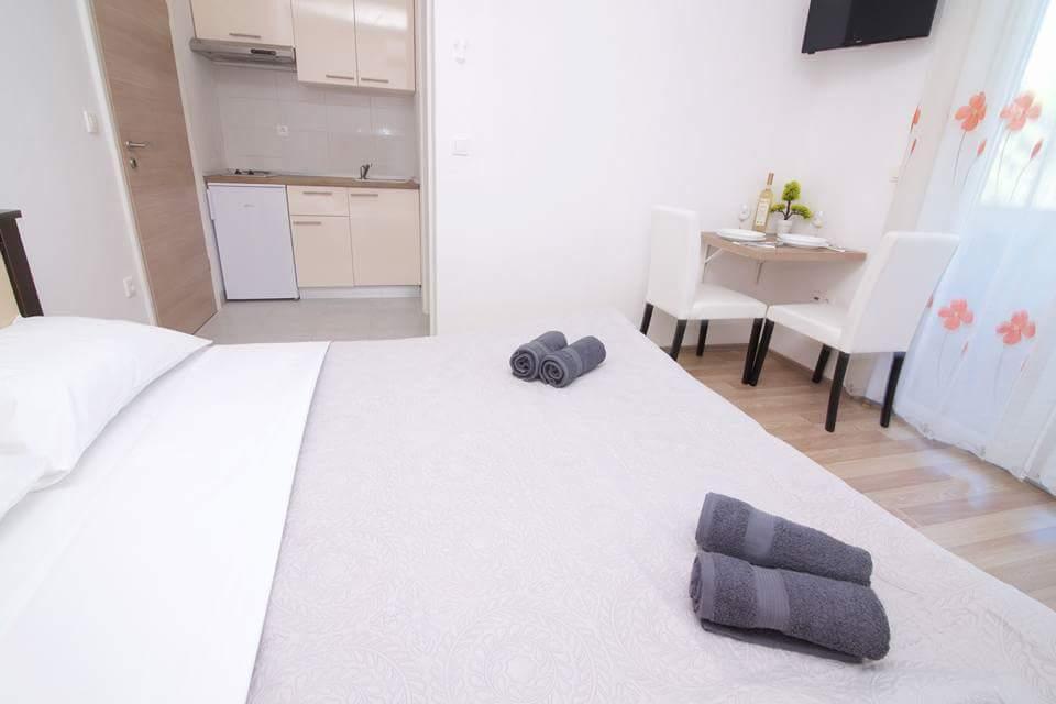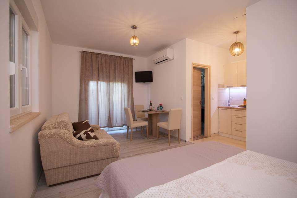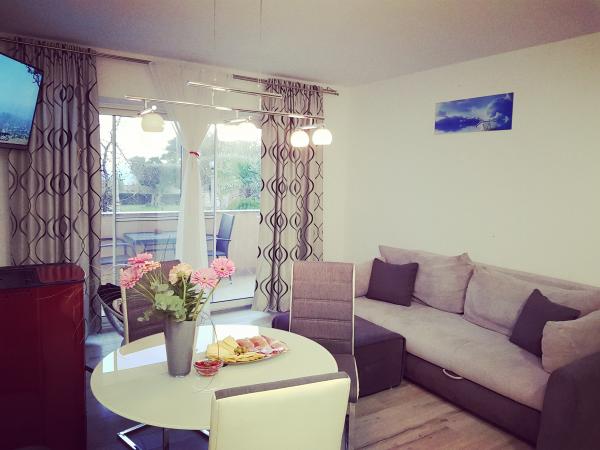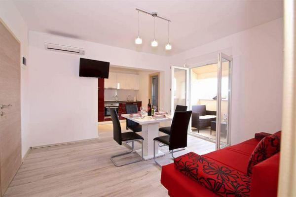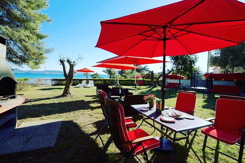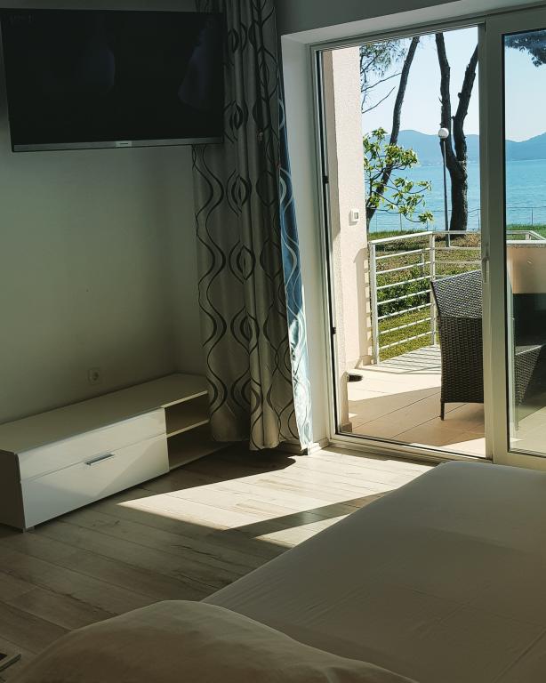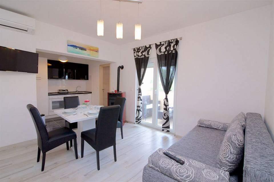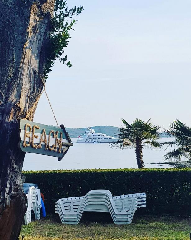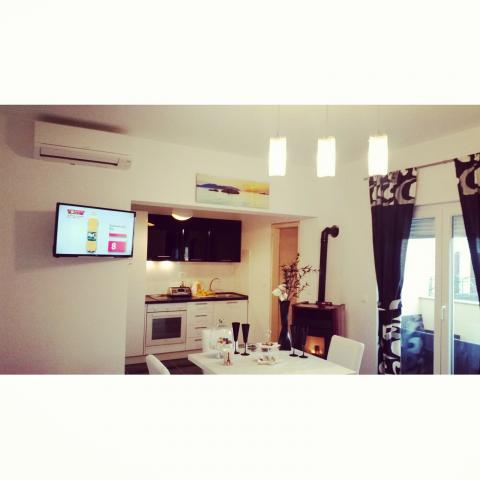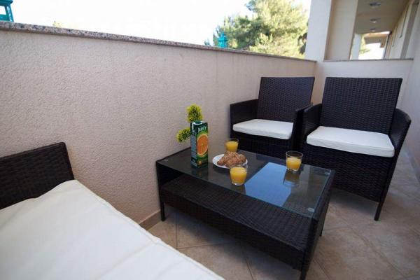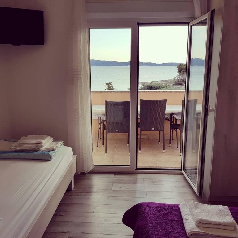 The first row to the sea, modern newly decorated apartments, from the large yard is a direct exit to the beach. The yard is large with lots of greenery, sunshades, sun loungers, swings, slide, children's trampoline, table, chairs and grill. The beach in front of the house is beautiful, sandy is especially great for children because there are plenty of shallows in the beginning. The beach is sheltered from the wind compared to other beaches in Sukosan and within the main beach Djeci raj. Distance to the center of Sukosan is 5 minutes on foot. the apartments are new, the kitchens are equipped with all utensils, cooking and cutlery, clean bed linen and towels, mosquito nets, water cookers. all apartments have internet, tv / satellite. Taxes and parking are included in the price. The use of air conditioners is charged 7 euros per day, so you do not pay if you do not use it. For a dog or big dog we charge an additional 7 euros per day for the cost of cleaning the apartment.