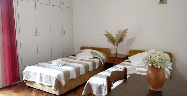 Apartments DARIO are located in Sukošan 10 km southeast of Zadar. The village itself is located on the tourist road in the middle of the Croatian Adriatic coast between Zadar and Biograd. Sukošan is a quiet place with clear sea, sandy and pebble beaches, hospitable people and tradition. Many recognized this as a place for an pleasant holiday. The house has four apartments. APARTMENT 1 is a studio apartment upstairs. APARTMENT 2 (A2+1) is also a studio apartment with a large covered terrace. APARTMENT 3 (A5) has two bedroom with a balcony and it is also upstairs. APARTMENT 4 (A7+1) is a three bedroom apartment downstairs with a large terrace. In the yard there is a large parking lot and a garden with swings and trampoline. There is also a barbecue and berth for a boat by the sea. DISTANCE - Airport: Zadar (10 km) - Nearest highway: toll station Zadar East - A1 (17 km) - Nearest ferry port: Zadar (14 km) - Closest national and nature parks: Vransko Lake (22 km), Velebit and Paklenica