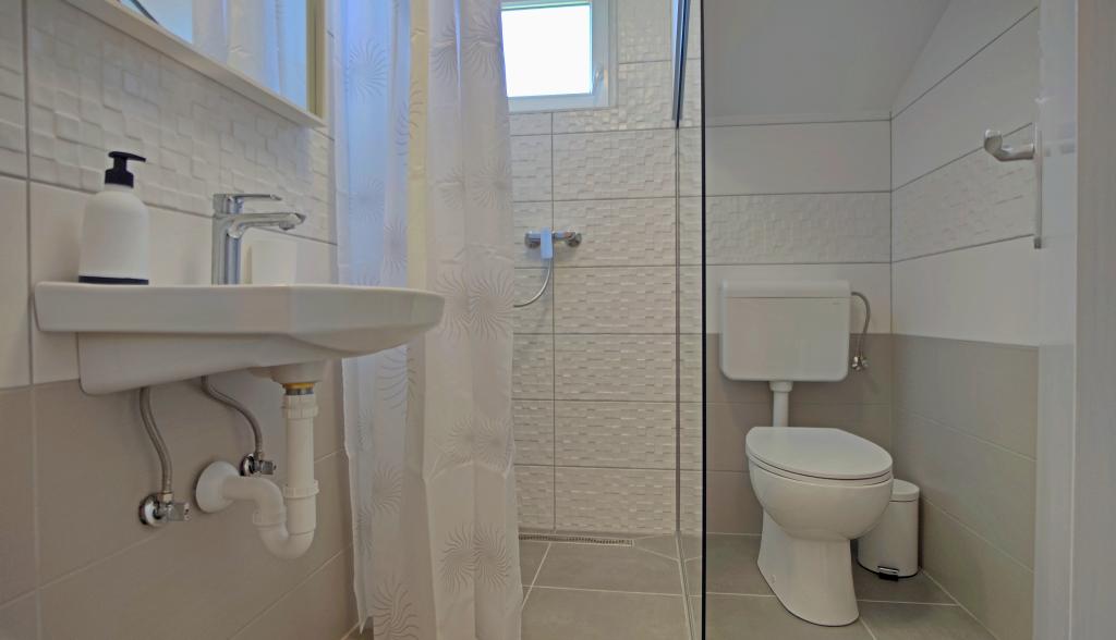 The apartments are a 3-minute walk from the sea, town center and shops and 5 minutes from the beach. Located in a quiet street near the town center. Parking is provided in the yard. Two apartments are on the ground floor of the building and each has an 8 m² terrace in front, and one is newly renovated on the second floor, in the attic of the building with a 6 m² balcony.