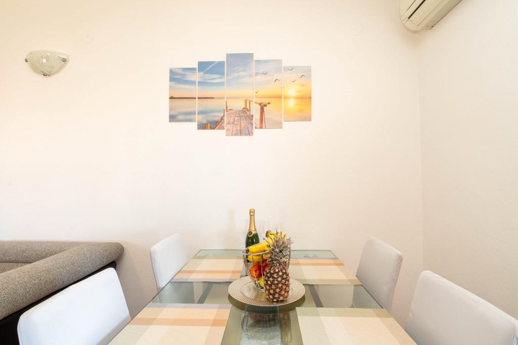 Just everything you need from the accommodation for a pleasant stay at sea, but more than that is a beautiful terrace with a view of the sea and the surrounding islands. Wonderful nature and peace, just as most people wish for a vacation. Friendly and accommodating owners, all in all a positive and pleasant holiday and stay in this apartment.