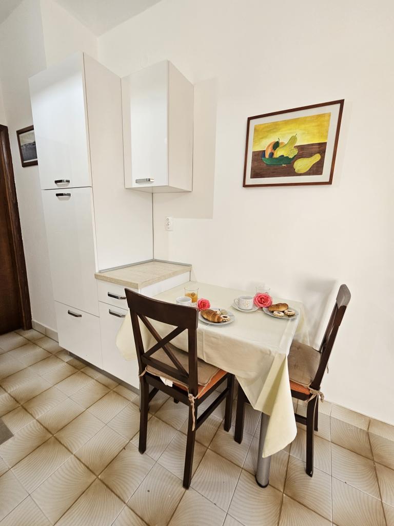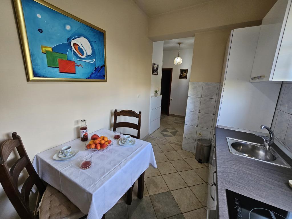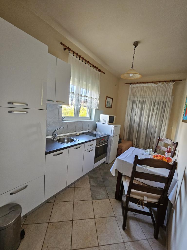 We were there for a week. The location is wonderful. The apartment is excellent, clean very well equipped has two balconies one has a beautiful sea view. Mosquito nets are mounted on the windows everywhere. Sea extremely clean, sandy bottom. The owners are very friendly. Extremely good price for such a well-prepared apartment. I really recommend!