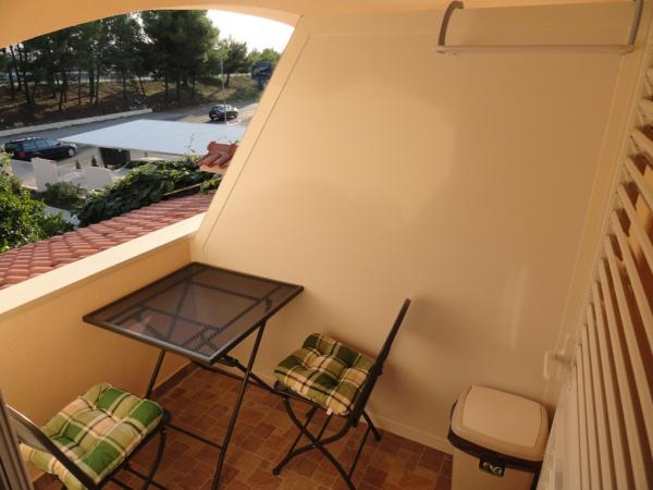 I recommend staying in the apartment. Size and equipment ok. Nice garden. The owner was friendly and helpful. The swimming pool is a big plus of this place.