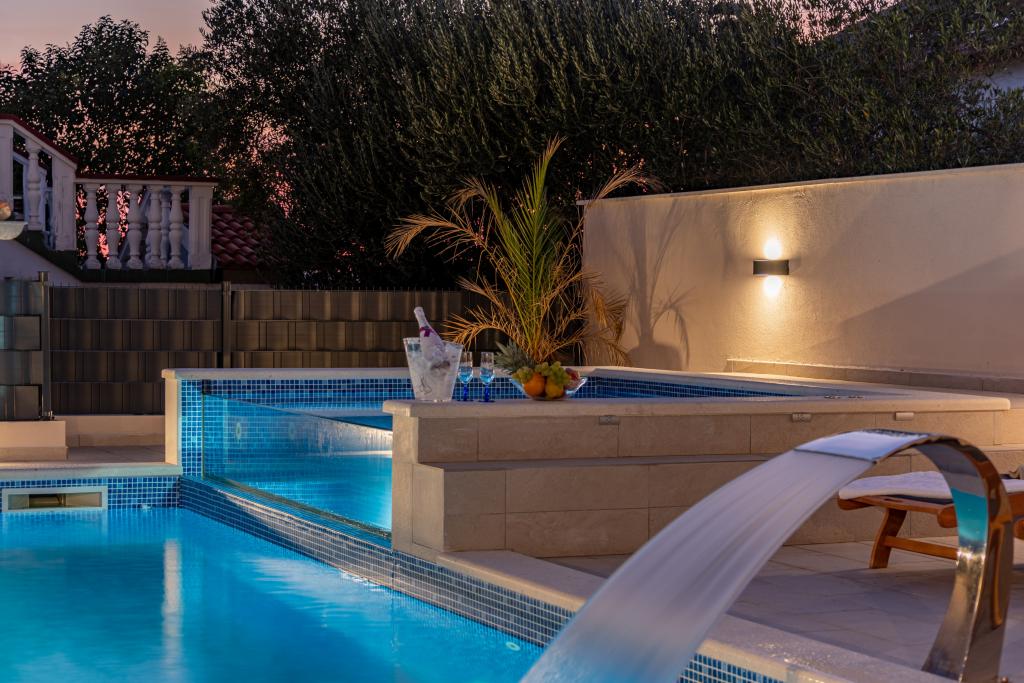We stayed for 2 nights, the apartment is clean, tidy, the kitchen is equipped. The pool is excellent, and the sea is across the street. The hostess came before us on the bus, and the next morning she became extremely hostile. I note that the children were not noisy, nor did they break any rules. The lady brought ALL the other guests juice, watermelon, some sign of attention, and treated me and my family as a lower class. She told the children not to accidentally throw stones into the pool(?), although no one would even think of it, in an extremely unpleasant tone. The first morning she came without good morning, how are you, give me more of my 140 e. There wasn't even a sponge in the apartment, because why bother for guests who are only there for 2 days. On my way out, I asked the lady to look at the apartment, since she was hostile that day as well. She said - the dishes are usually put together! Dishes washed. Yes, the dish goes well, especially if you give the guest a sponge in time. On leaving, she didn't say goodbye or anything. Ruined vacation because of someone's rudeness and incorrectness, not because of, for example, a septic tank that is very noticeable. I don't recommend it, unless you came with a car with foreign plates, then you will also get some courtesy. You can even be noisy at midnight, like a group of 5 guys next to us.
