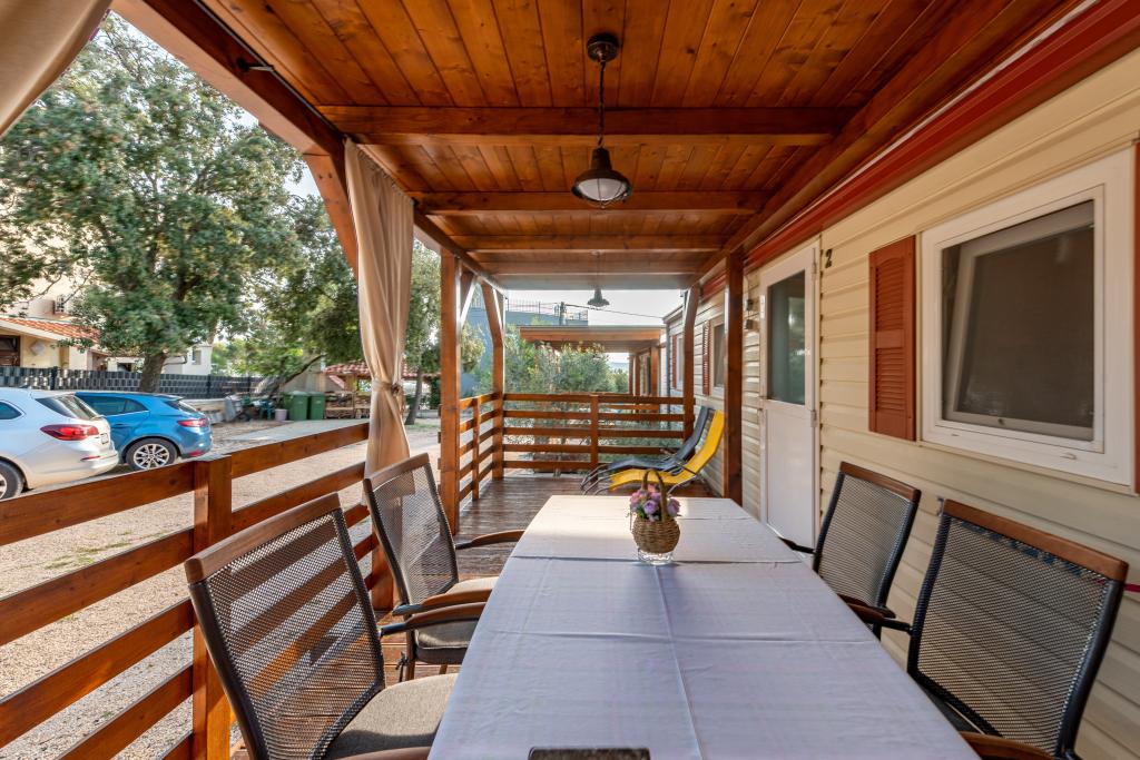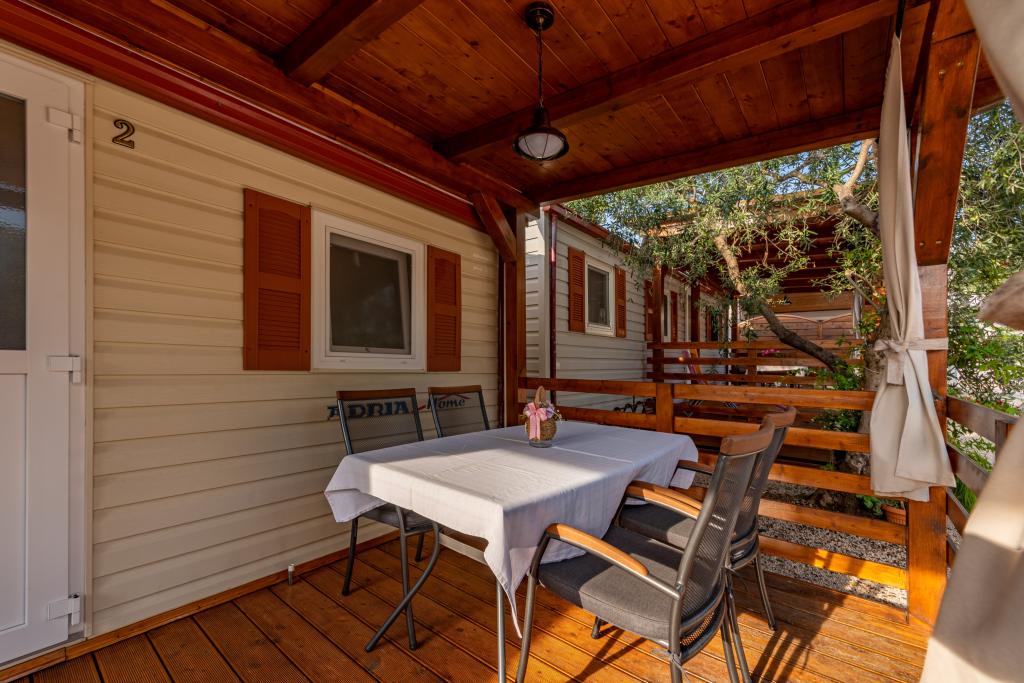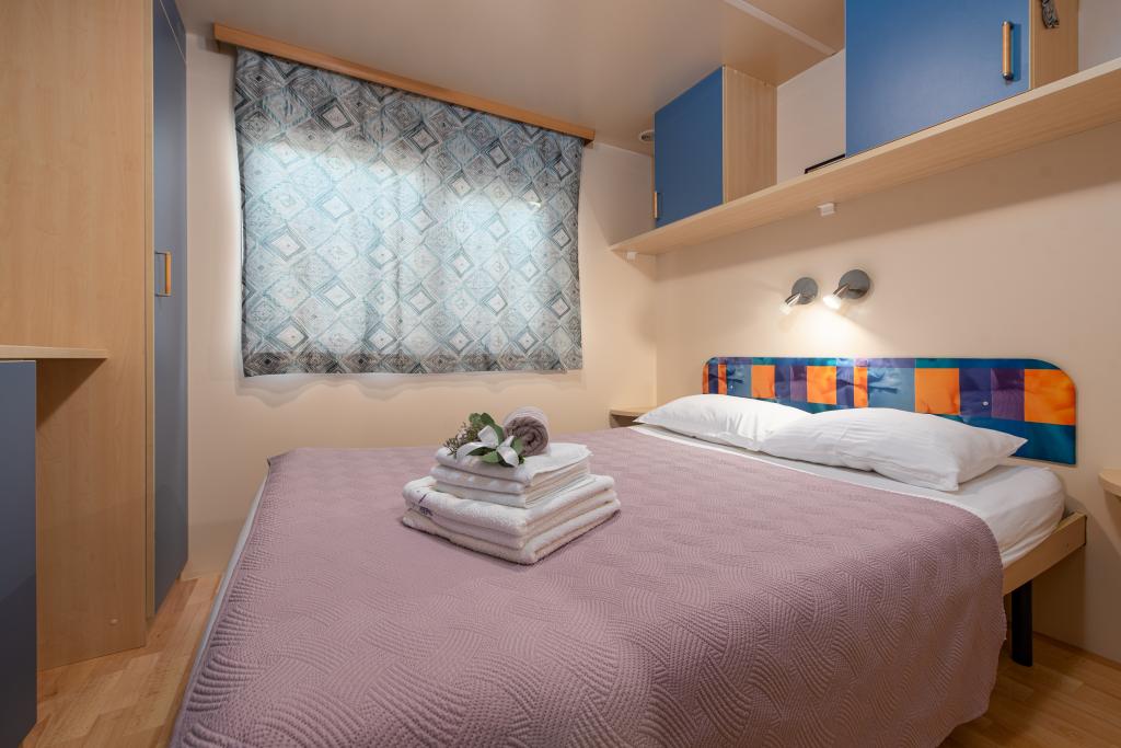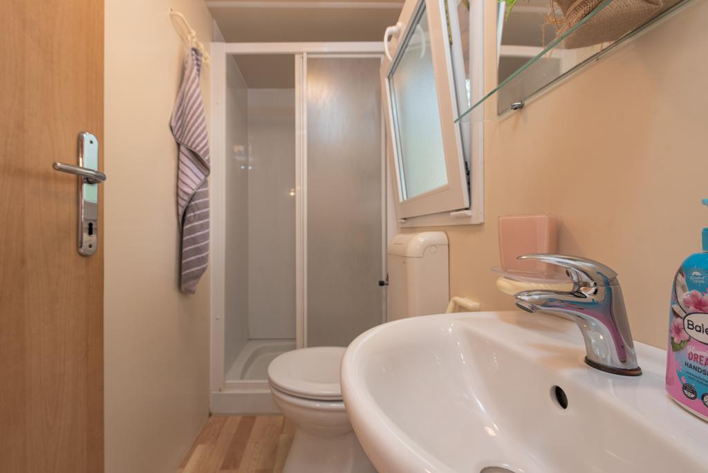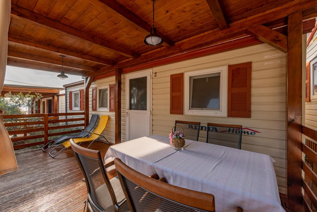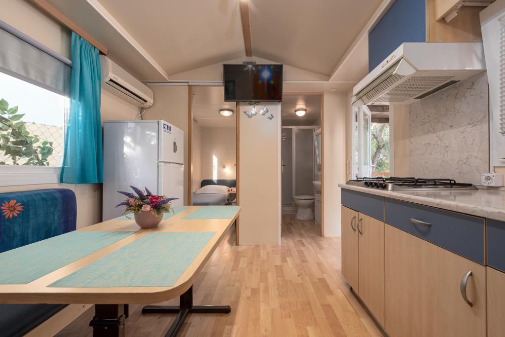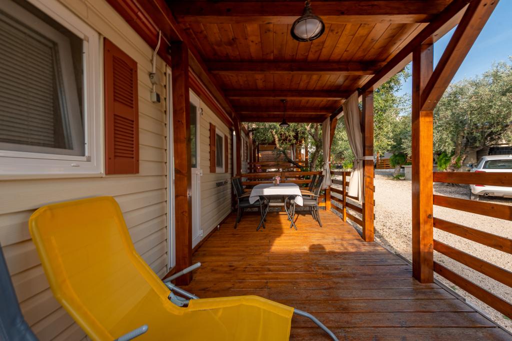 A beautifully decorated mobile home with two rooms, each room has its own bathroom and toilet and a large terrace, a new swimming pool with heated salt water, modern and comfortable sunbeds that are free of charge and, in addition, very kind and friendly hosts who are always at your disposal. Simply perfect.