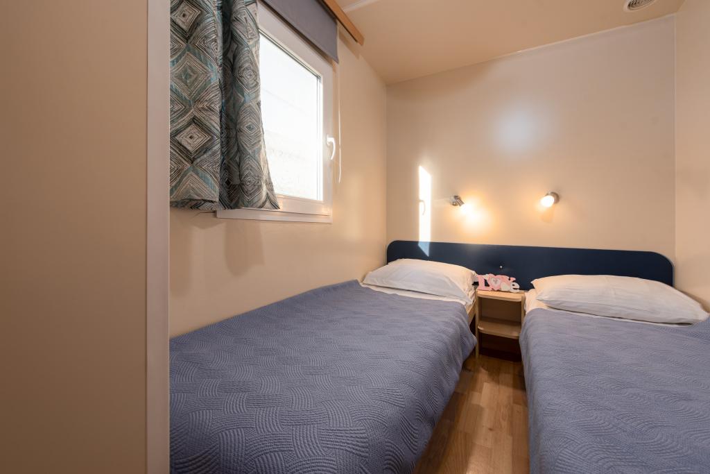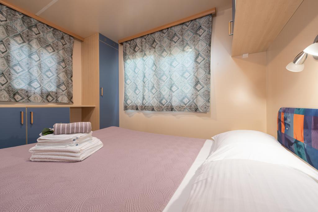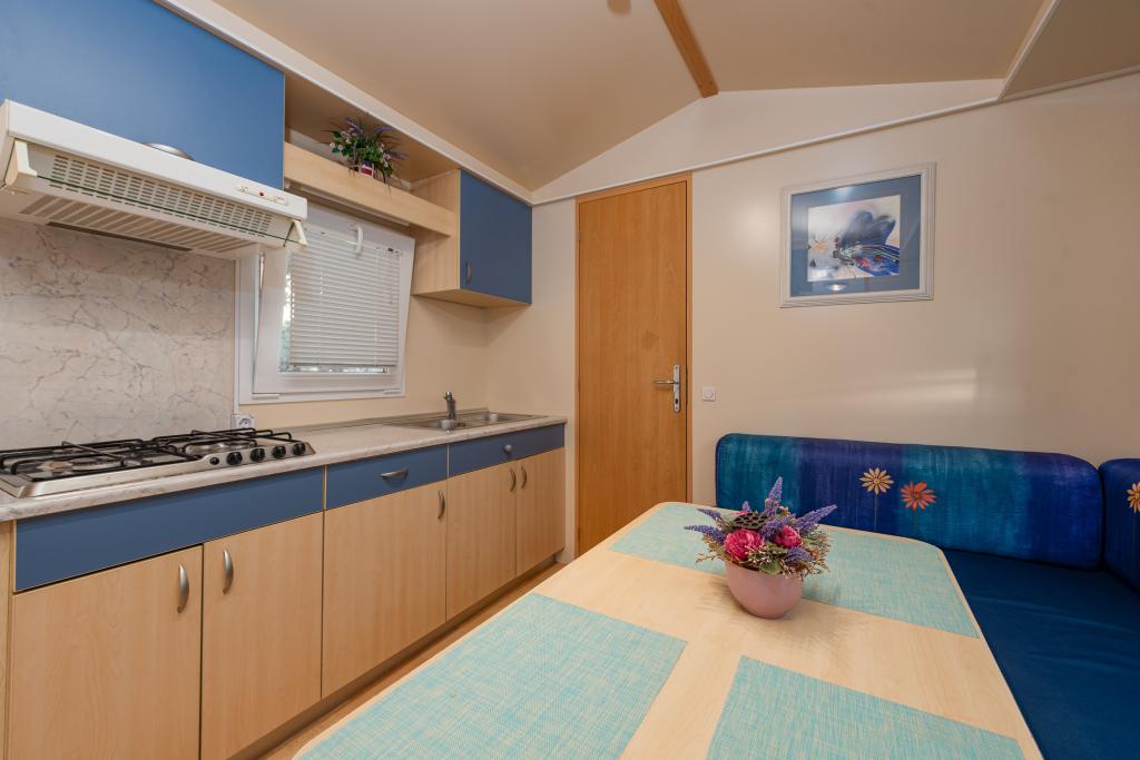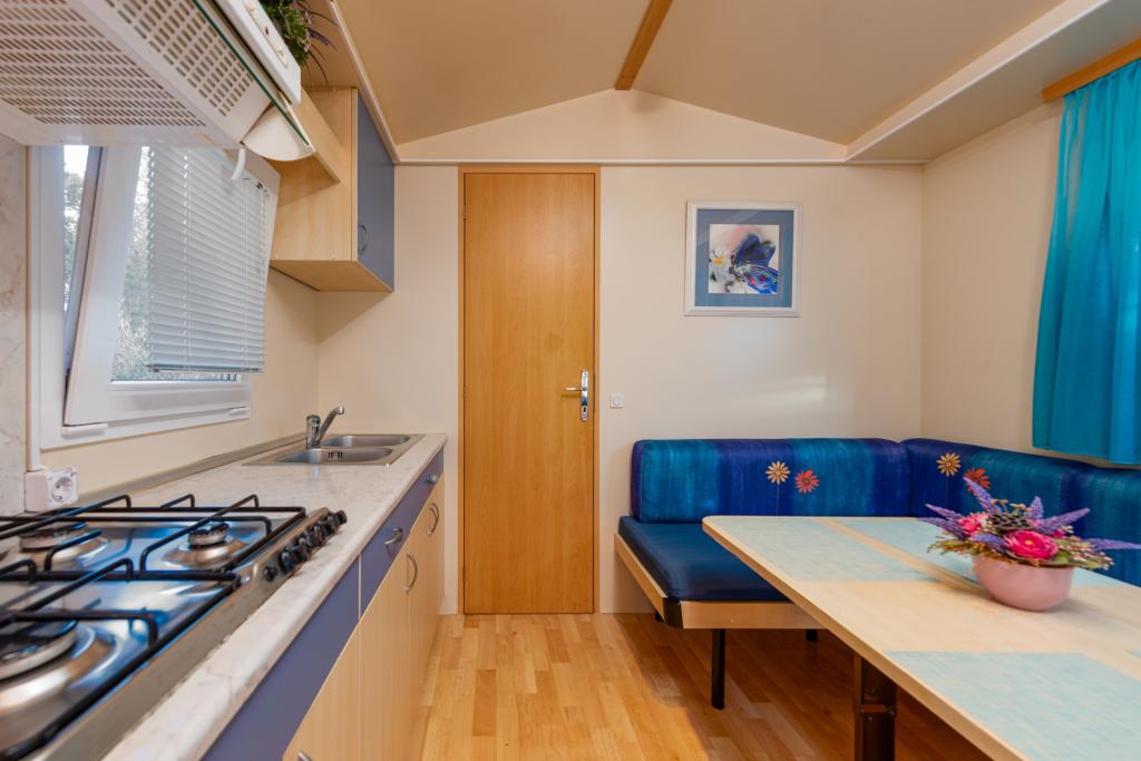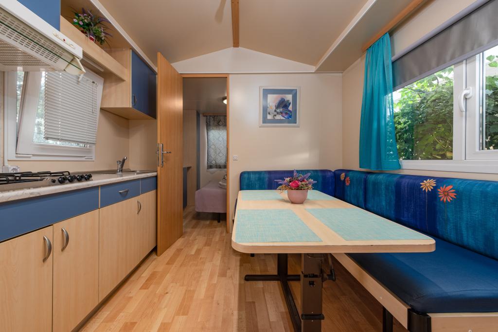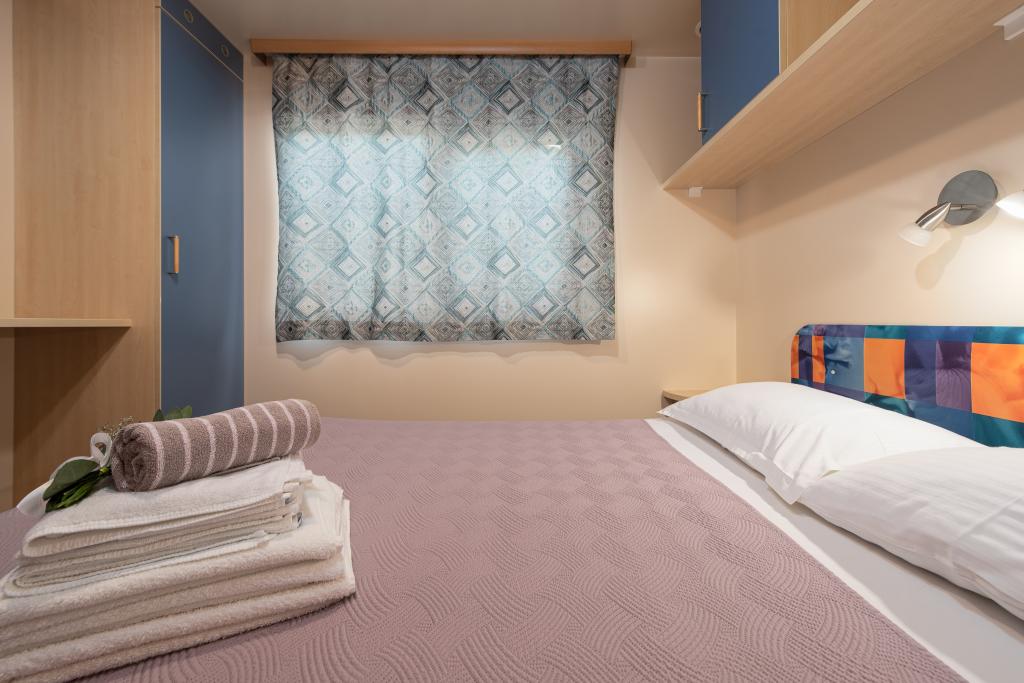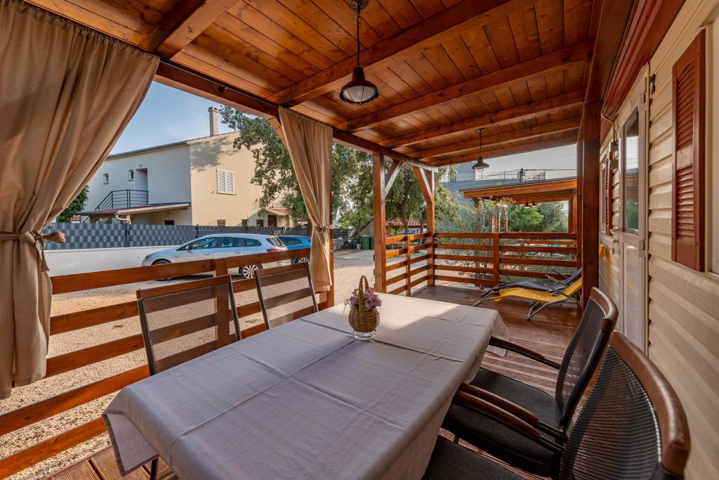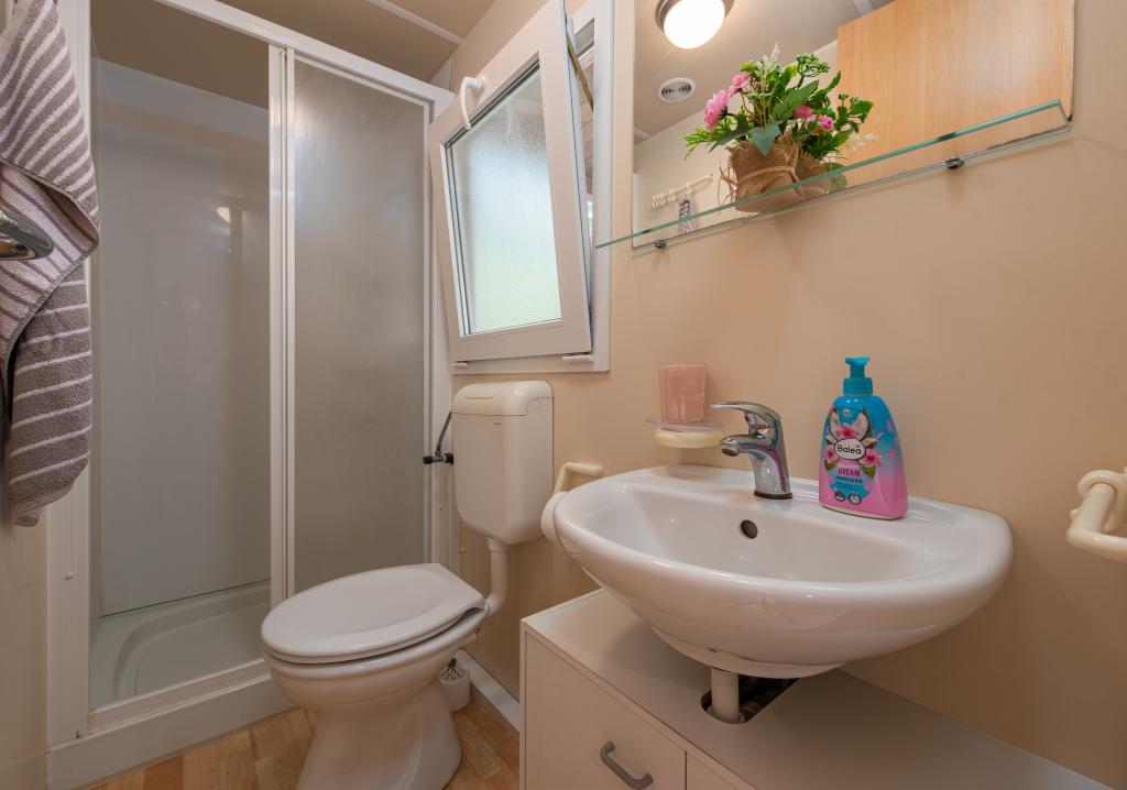 A beautifully decorated mobile home with two rooms, each room has its own bathroom and toilet and a large terrace, a new swimming pool with heated salt water, modern and comfortable sunbeds that are free of charge and, in addition, very kind and friendly hosts who are always at your disposal. Simply perfect.