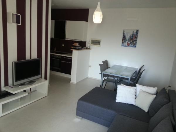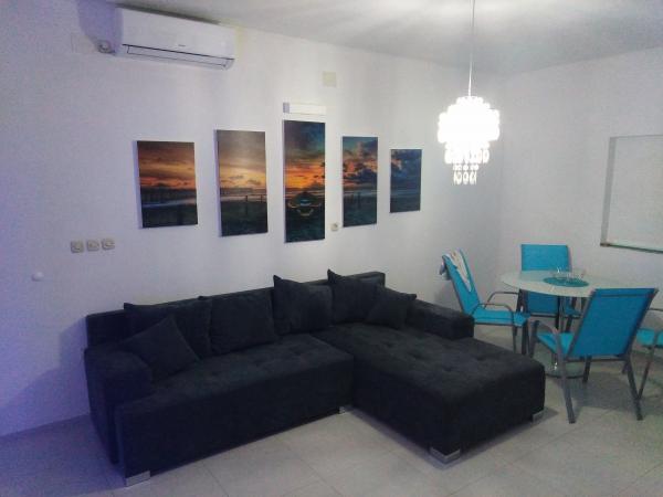 Luxury and newly equipped apartments with AC and wi-fi connection, located in the quiet part of Sumartin. Each 55 sqrm apartment has one bedroom, living room, bathroom, kitchen and 30 sqrm terrace with a view of the harbor. Apartments are ideal for couples a family with kids as it can fit up to 4 people. Garage can fit up to 3 cars. Apartments, located 3 min walk from the center are also close to several beautiful beaches, cycling and running trails. The apartment is located in a perfect place for tourist who are looking for peaceful and relaxing spot far from city lights and overcrowded tourists destinations. Located in a center of Sumartin, close to calm harbor, favorite to a lot of sailors, apartments are in perfect position to find undiscovered beaches with crystal clear water.