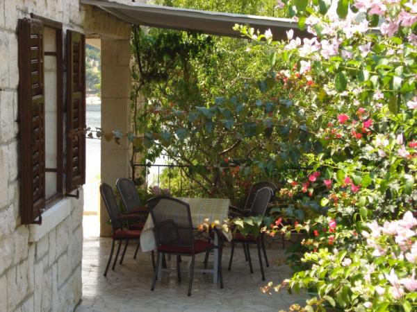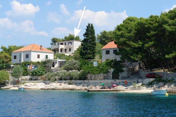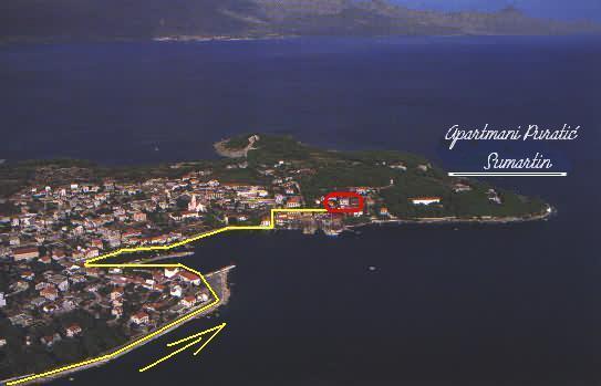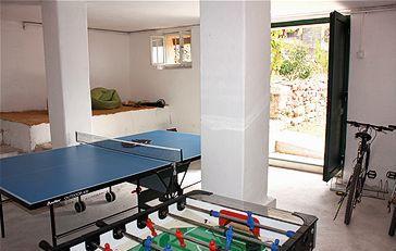 Puratic apartment is located in a quiet village on the east coast of the island. Located just 30 meters from the sea is ideal for a quiet family holiday. Its area is 100m2 with three bedrooms, bathroom, kitchen and dining room, and a 150m2 terrace with outdoor shower. There are wood-fired oven and grill. In the basement there is a games room in 50m2 with table tennis, darts, foosball. . .