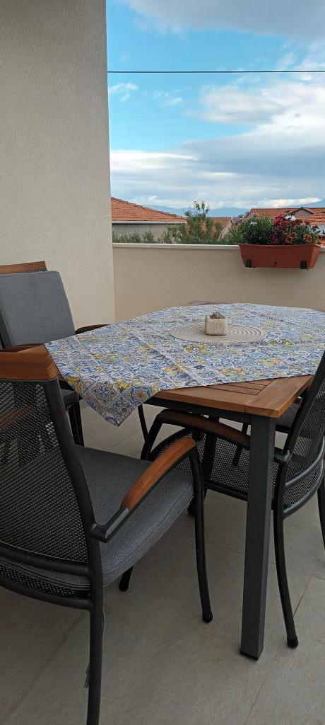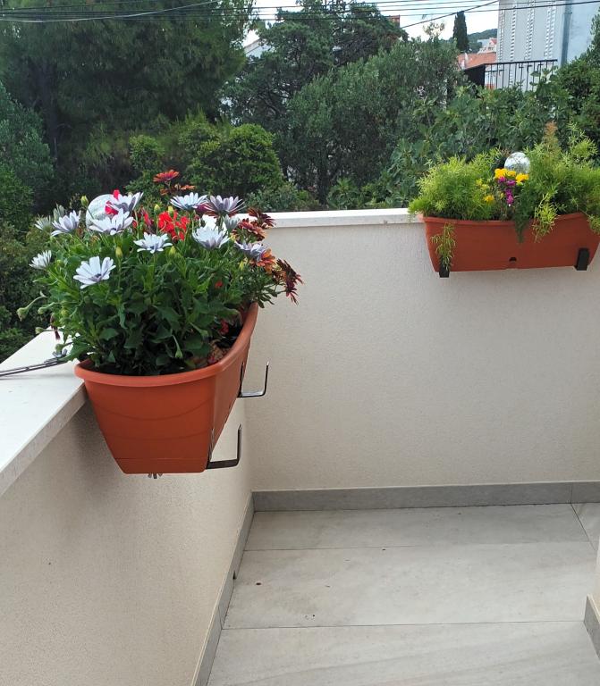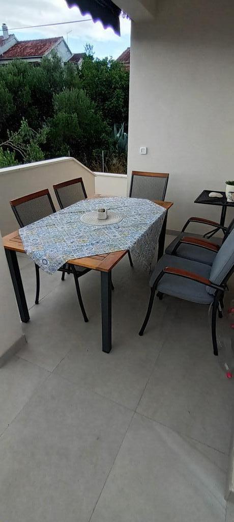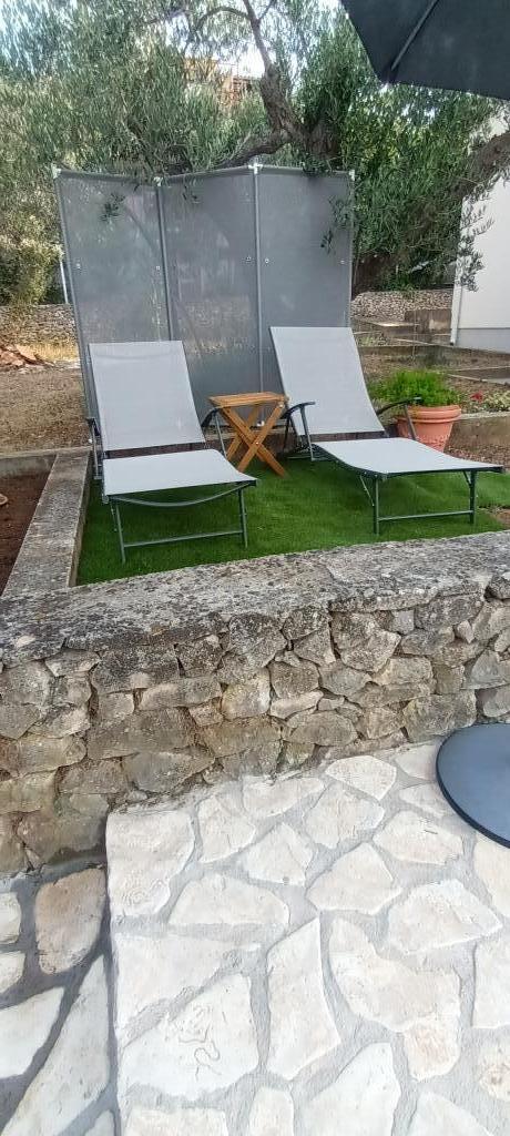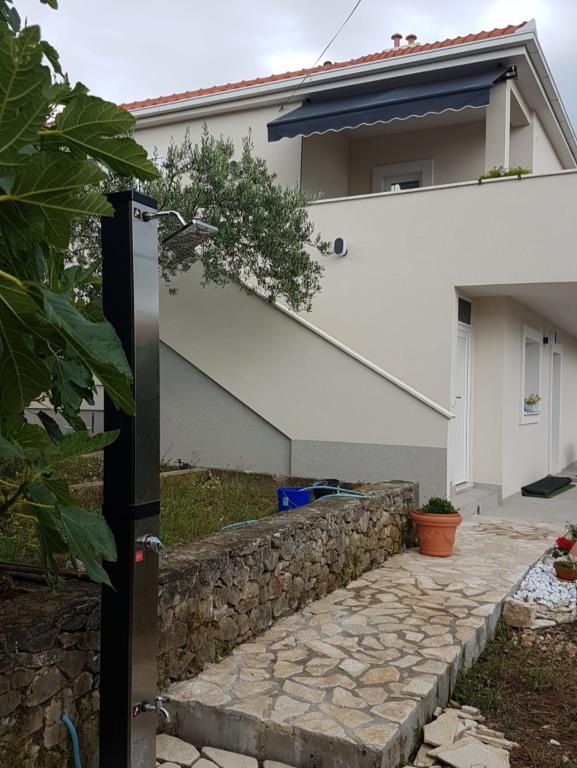 Fully equipped newly renovated apartment on the first floor of the house is for rent with a sea view. The entire floor is for you. On the ground floor there is only one more studio apartment, which is occasionally used only by the owners. The apartment is in a quiet environment, 300 m from the sea - beach. Everything is available in 3 to 10 minutes on foot (supermarket, bank, post office, restaurants, cafes and entertainment facilities). The apartment is for 5 people; all rooms are air-conditioned, as well as the living room and dining room with a kitchen that is fully equipped (dishwasher, large refrigerator, microwave, coffee maker, electric kettle, etc.). TV with free internet; large bathroom with toilet with walk-in shower, bidet and washing machine. Balcony and terrace with sea view with outdoor dining table. Courtyard with deck chairs, outdoor solar shower, barbecue and free parking with lock. This is the right place to relax, rest and enjoy the Mediterranean ambiance with the scents of lavender, rosemary, sage, laurel, as well as figs straight from the tree.
