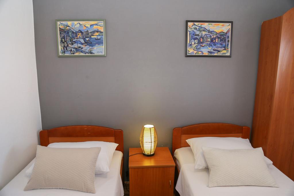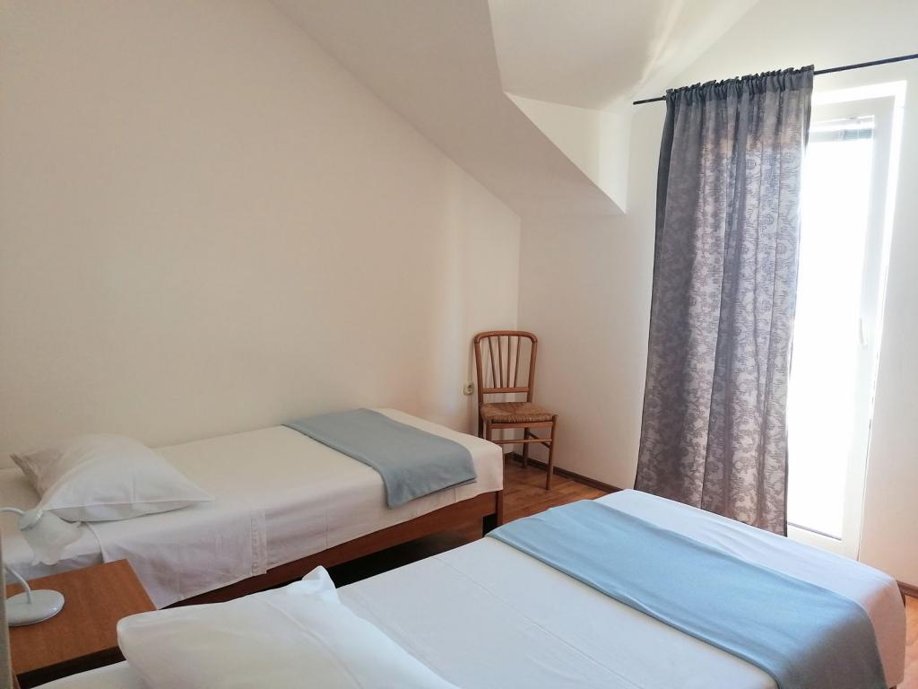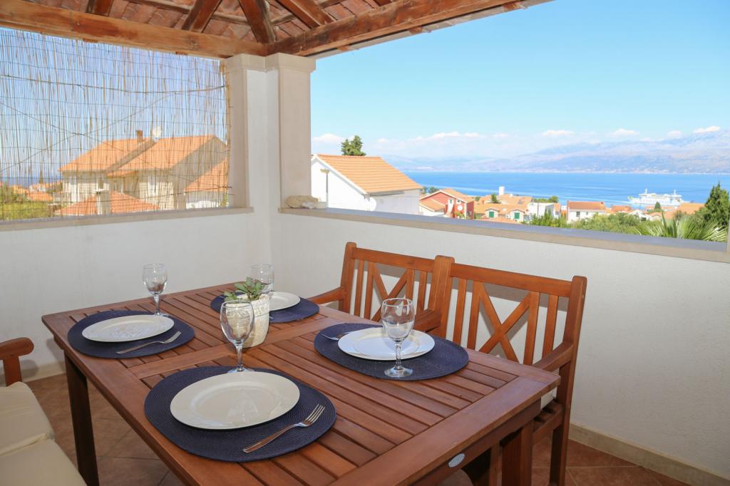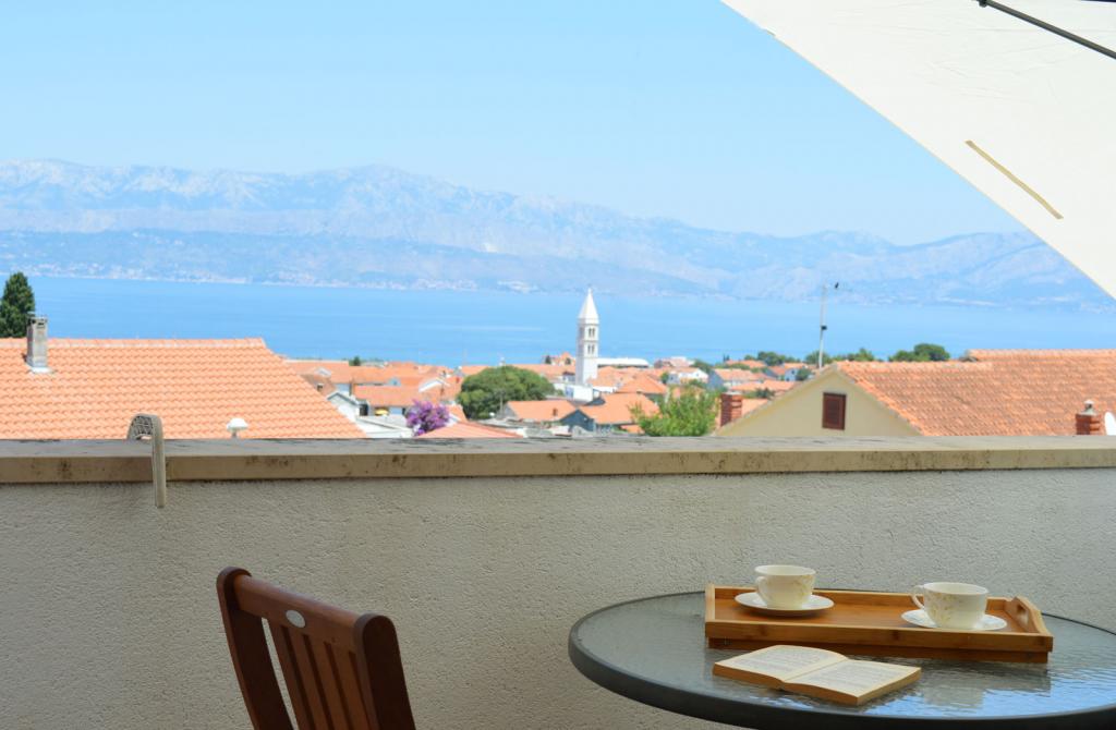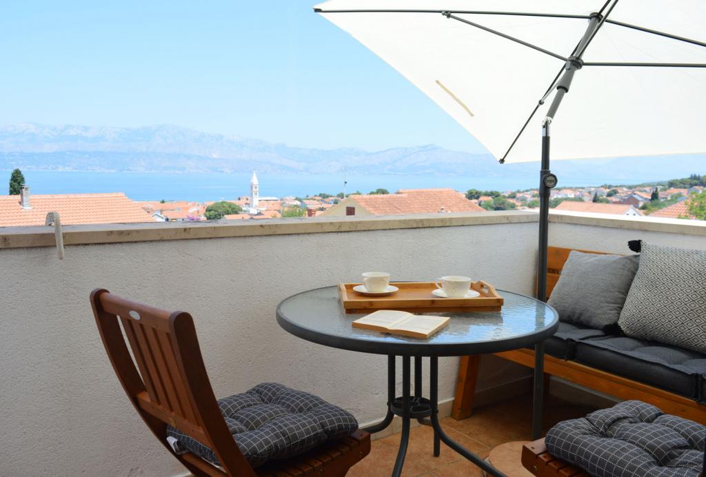 Eat breakfast at the terrace of this bright apartment overlooking the sea. Admire the view or head out to explore the city’s winding streets. This friendly neighbourhood and small-town Supetar has many things to offer, within walking distance you can enjoy a farmers’ market, restaurants, coffee shops and beaches. The apartment has 2 rooms, a wide terrace and a living room, so it is perfect for a family with children. The apartment offers a shared swimming pool, too. The apartment is part of the "Natalia apartments" - a family home with three apartments for rent.