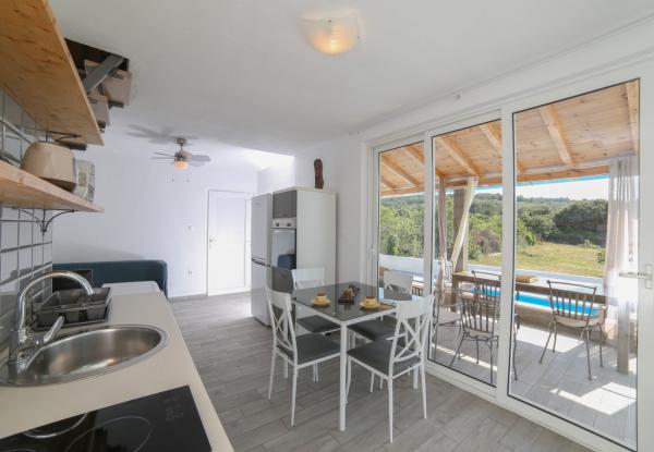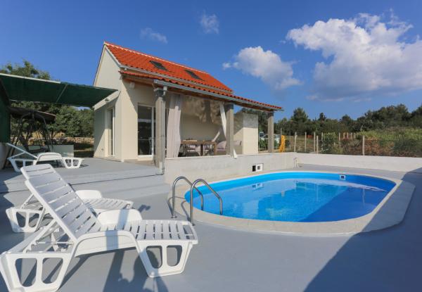 Rent a house with a large pool (8 x 4, 20 meters), in the town of Mirca, only 3 km away from the tourist center - the town of Supetar. The house is in an intimate location and hidden from the view. It is located on a plot of 4000 m2, surrounded by lawn, orchard and vineyard. The house is on two floors. On the ground floor (24 m2) there is a living room, kitchen and bathroom with shower. The inner stairs lead to the loft where there are two bedrooms, one with a double bed and the other with separate beds. The terrace is covered and the pool environment is ideal for sunbathing. All this space you have for yourself. Ideal for kids in pets. Bol and the famous Zlatni rat beach are 40 minutes away by car.