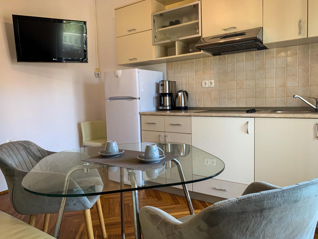 Read more Accommodation unitsIn order to mutually secure the reservation, an advance payment of 20% is required. The rest of the bill is settled upon arrival by agreement: either by bank transfer or cash. The apartment rental price includes basic beds, energy, bed linen, towels, air conditioning, taxes. The price of the room (numbers 2 and 5) includes breakfast for 2 persons. Each guest in the apartments or studios can receive breakfast, lunch and/or dinner for an additional fee. The price does NOT include: additional persons, mooring for boats.