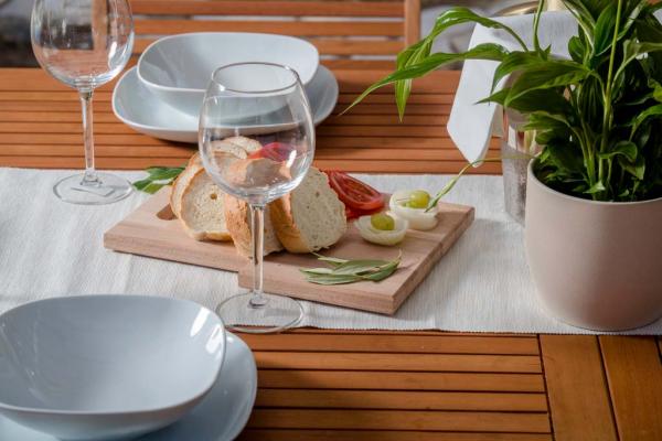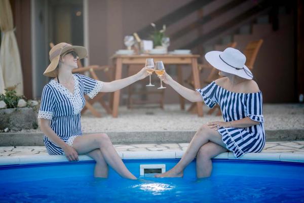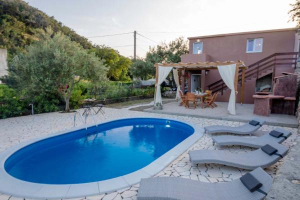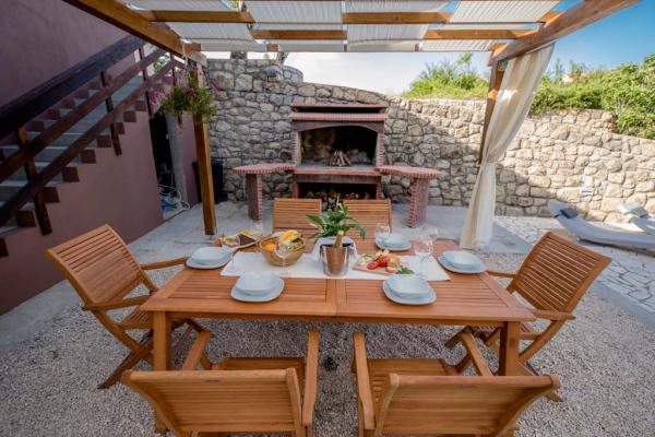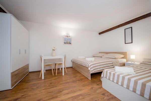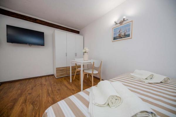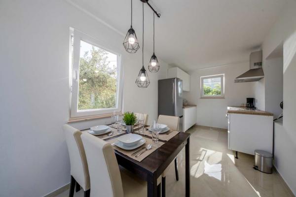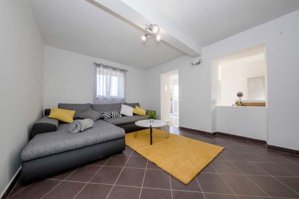 Holiday house for 7 people. On the lower floor there is a kitchen, bathroom and a room for three people. On the ground floor there is a large one bedroom apartment of approx. 70m2 which consists of living room, kitchen, bathroom and bedroom. In the yard there is a large barbecue, a billboard with baldachins and a swimming pool. Oarking and the internet are free. Pet friendly.