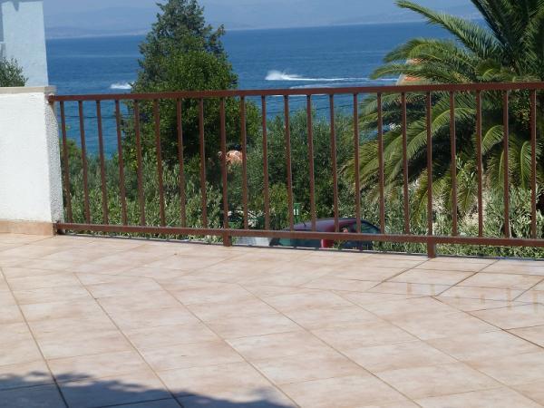 The apartment is great, our family loves coming back to Mrs. Bisera's place, for the 4th year in a row. The apartment is very spacious, has 3 bedrooms, a kitchen with a dining room, a bathroom and a huge terrace, which is indispensable for our family (beautiful sea view). The beach is very close, as is a nice bar, shop and many taverns. The hostess is very friendly and helpful, she will be happy to direct you to beautiful beaches and coves that are not to be missed.