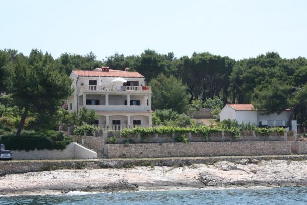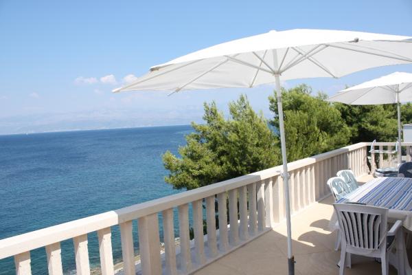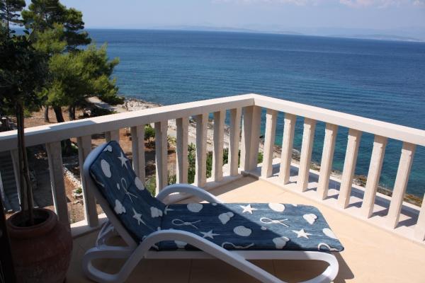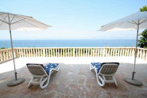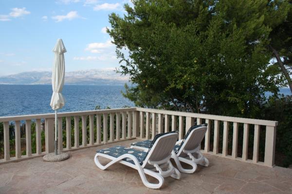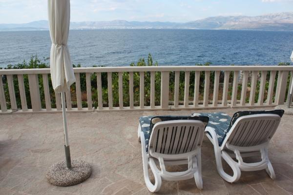 Our stone villa, surrounded by a large garden of 2,000 m2 planted with Mediterranean plants, is located in Sutivan, a quiet and picturesque place on the coast of the island of Brac, 10 km away from the ferry port in Supetar. The villa is located next to the sea, so it offers unobstructed views of the sea and Split with its surroundings. The Sutivan area where the villa is located is known for its pebbly and sandy beaches, and the villa is located in a quiet and quiet neighborhood of residential villas. The first stone beach is located 20 m in front of the house, while the other beaches are 150-200m away. Larger beaches are equipped with changing rooms, toilets and showers, some of which have a coctail bar, a coffee bar, a jet ski rental. GRMA 1/2/3 apartments have a bedroom (2 1 if necessary an extra bed for a child up to 12 years), a kitchen and a bathroom, with access to a large terrace with deck chairs and parasol. The apartment (type GRMA 4) has 2 spacious bedrooms, a living room, a kitchen, a bathroom and an additional toilet, and is surrounded by terraces on all four sides.