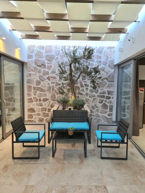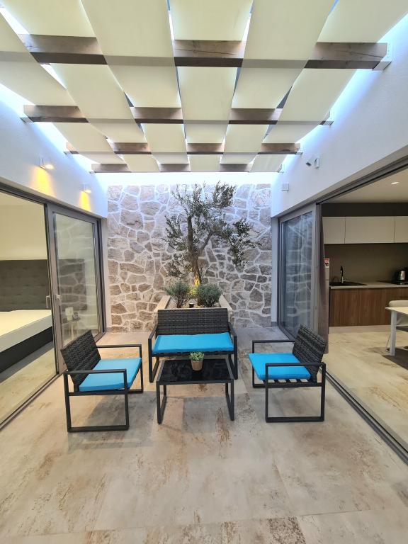 Newly and modernly equipped apartments in a quiet area of Sutivan. The facility is located 5 minutes walk from the center and the beach. Each apartment has a parking space. The shop is 200 meters from the apartment. You have the possibility to use the grill with a large stone table, a common room for laundry.