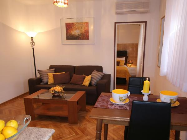 Villa ReniPOL contains 6 apartments, 3 on each floor. Apartments are for 2, 4, 5 and 6 people, each with satellite TV and klimatizacjom. The apartments have balconies and terraces with tables, chairs and umbrellas. Guests under the cost apartments have parking and use the summer kitchen with grill, which is located in the garden of the villa. Environment Ville ReniPOL rich in indigenous fruits: kiwi, oranges, tangerines, lemons, pomegranates, grapes and herbs; lavender and rosemary, and many colorful flowers. The family Ivanovic offers their own products, such as virgin olive oil, white and red wine, brandy and walnut. With the summer tourism, Villa Renipol offers autumn program of olive harvest with a traditional Dalmatian dishes. Villa ReniPOL is located in the elite side of town, 80m distance from the sea. The nearest beach is 100 m. The center is situated barely 150 m contains several restaurants, cafes, pizzeria, post office, food stores and a market with local fruits.