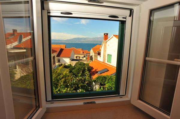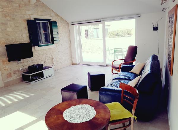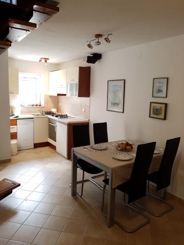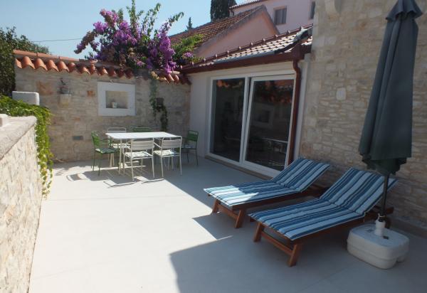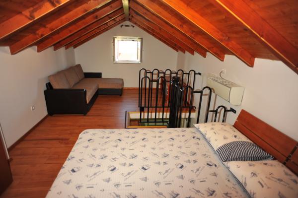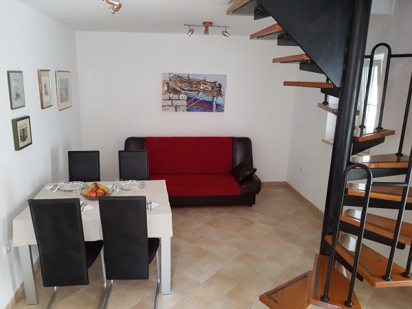 House Mihaela, 50 m from the beach, in the quiet side of town. Interestingly designed and equipped space, the size of about 75 m2 garden terrace. Bedroom is located on the first floor, overlooking the sea. It has one double bed and one single bed. On the ground floor is a fully equipped kitchen with a large dining room, the door is connected with a huge living room with access to an intimate garden terrace. The bathroom has a shower / bath.