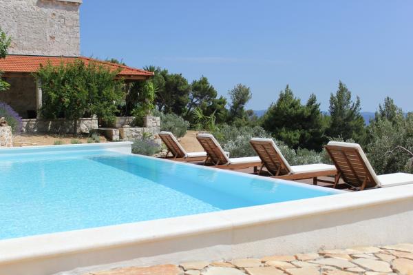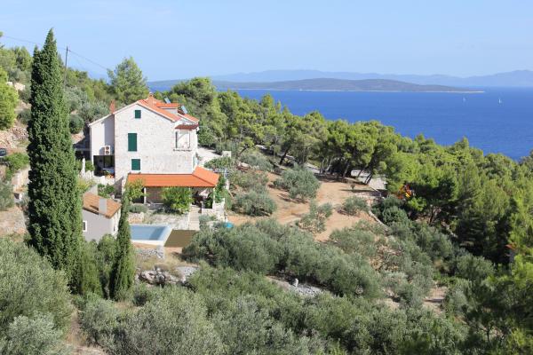 Villa Perka is situated in the charming, picturesque village of Sv. Nedjelja, Hvar\\s most important vineyard region. A home to the only Grand cru in Croatia, Zlatan Otok winery, one of Croatia\\s finest producers is five minutes walk from the villa. The villa is perched mid-way up the hills, surrounded by vineyards to the sides, the cobalt sea below and the cave and St. Nicholas peak to the back. It is free of buildings around, completely fenced with it\\s own private garden spread across 2000 square meters and therefore particularly attractive to tourists in search of peaceful and relaxing holidays. The location is also perfect for those looking for beautiful little coves with fine pebble beaches where you can find some privacy. The private parking lot is in front of the house. All villa apartments are with separate entrance and glass doors that allow light to flow through the house creating the relaxed feel and enabling you to enjoy the view even while sitting in the living room.