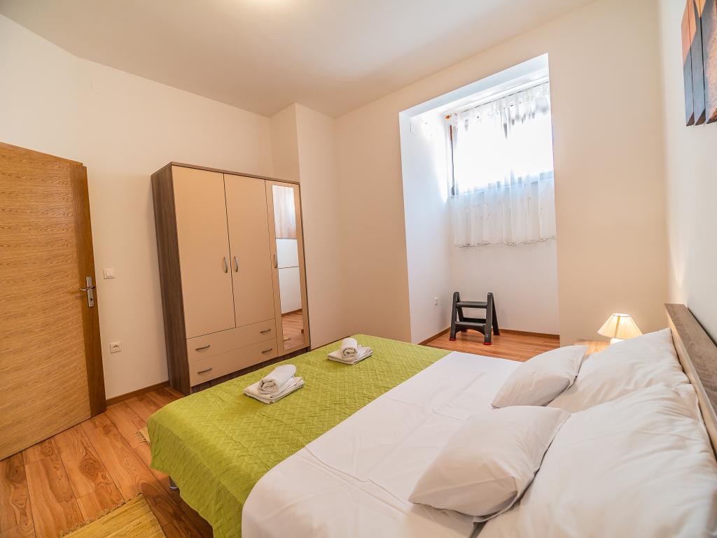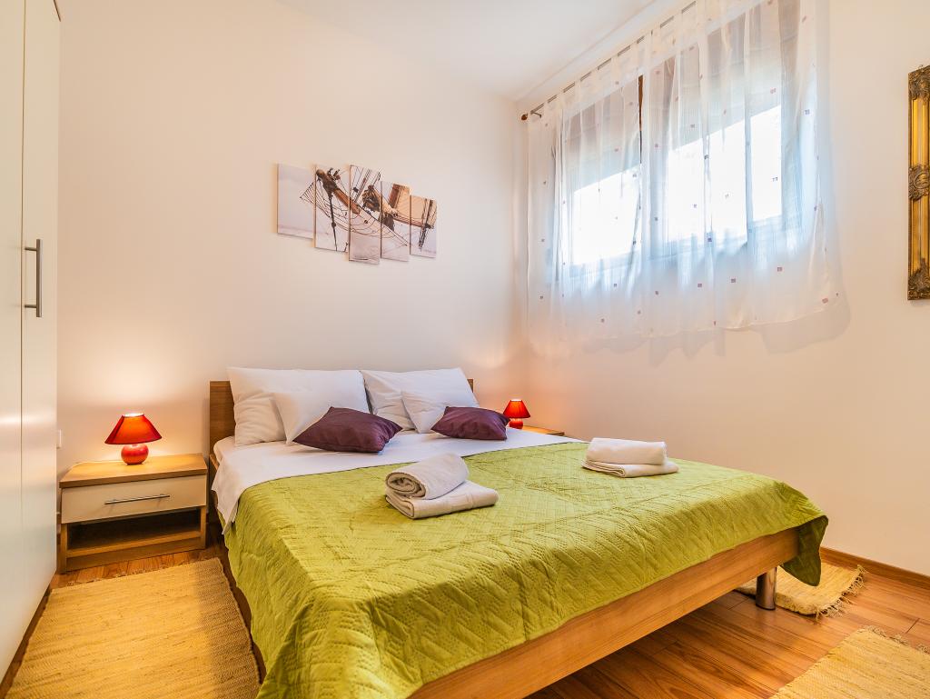 Apartment in a beautiful and quiet area in Sv. Filip i Jakov, first row to the sea, sandy beach about 100 meters away, and there are also pebble beaches. The apartment is attached to a family house, the building has its own garden and parking lot. It is a 5-minute walk to the town center, as well as to necessary facilities such as a shop, post office, sports field and doctor.