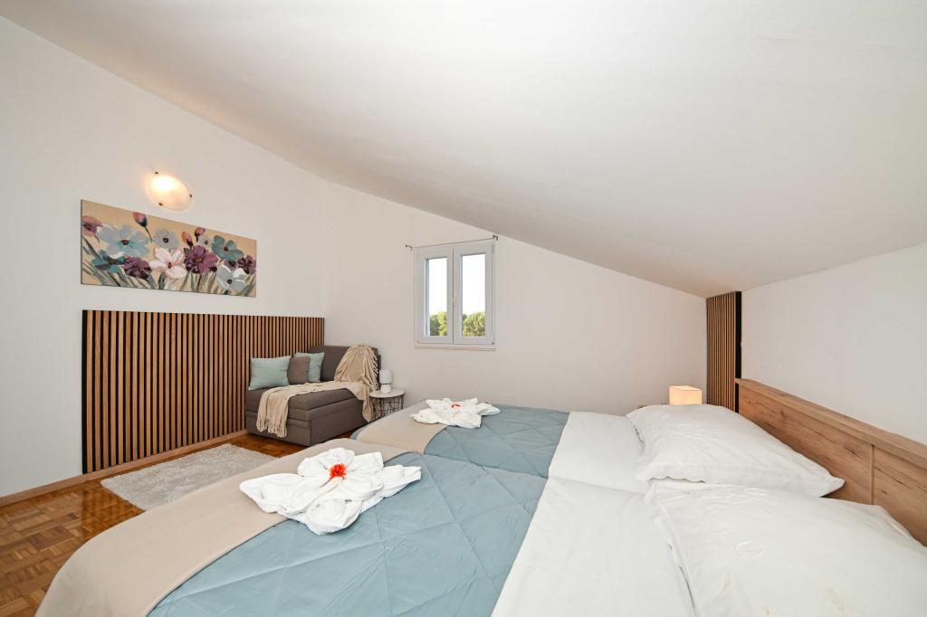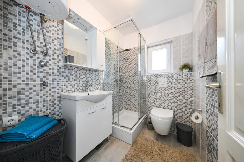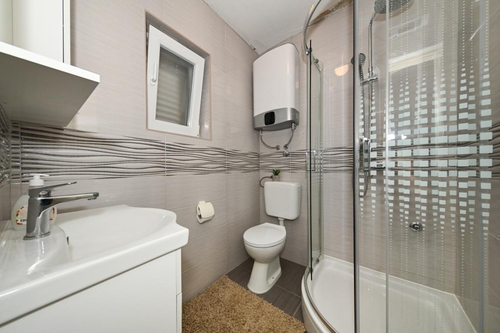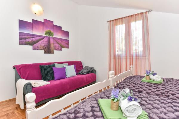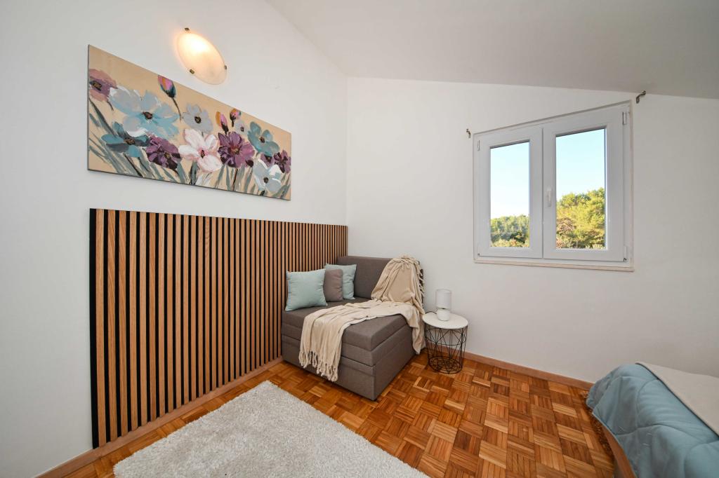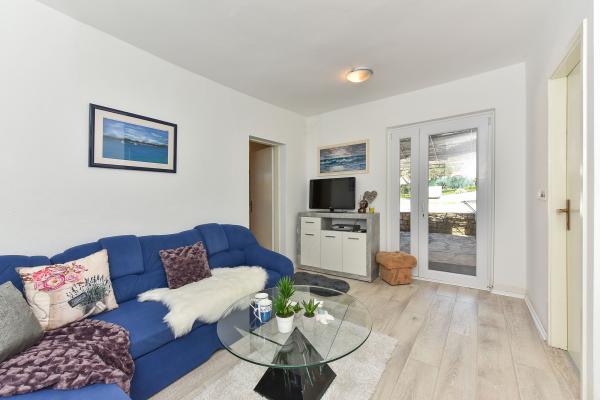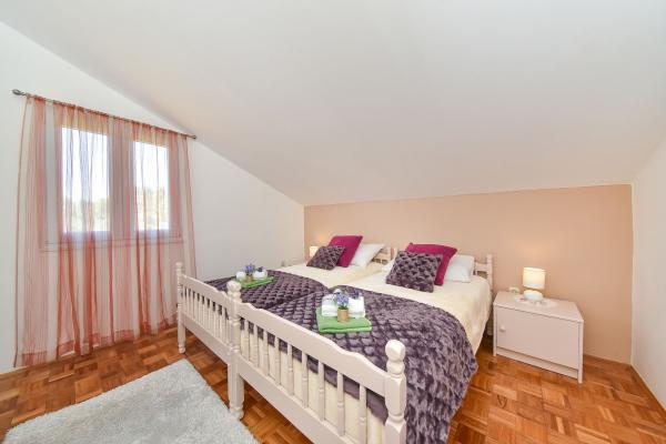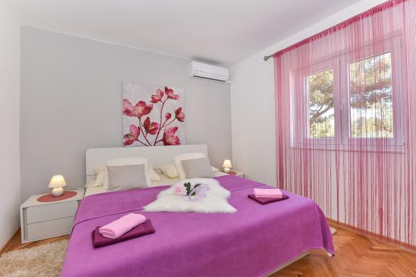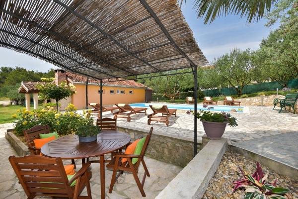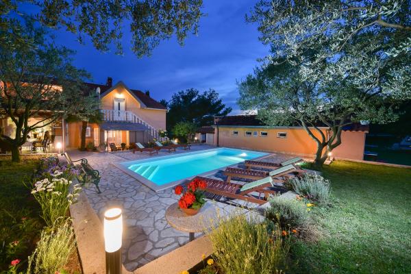 Give us the opportunity and your unforgettable holiday you will experience just by us. In our apartments superbly landscaped near the pine forest and the sea your vacation will be complete. The promenade and the nearby lookout, bike paths, close to Vrana Lake Nature Park, and the National Parks Kornati and Krka waterfalls, ancient towns of Zadar and Sibenik, will surely meet the expectations of the most demanding guests. Our complex is the size of 2500m2, surrounded by olive trees and pine forests. From the courtyard there is a nice view of the sea-Pasman Channel. In the complex there is: • Family house, where there are two separate apartments (for 4 and 6 people). • Apartments are equipped with air conditioning, TV, Wi-Fi and terraces overlooking the sea and swimming pool. • Pool: Next to the house is a swimming pool with beautiful surroundings and sun loungers • The pool is located, there are two bathrooms with showers and two bathrooms, separate space for laundry, which is Opremjen with a washing machine and tumble