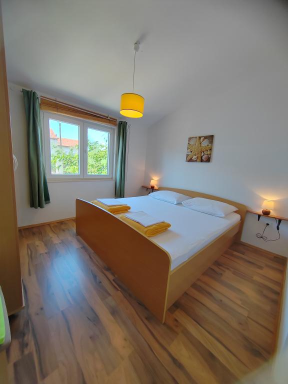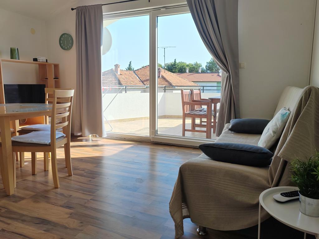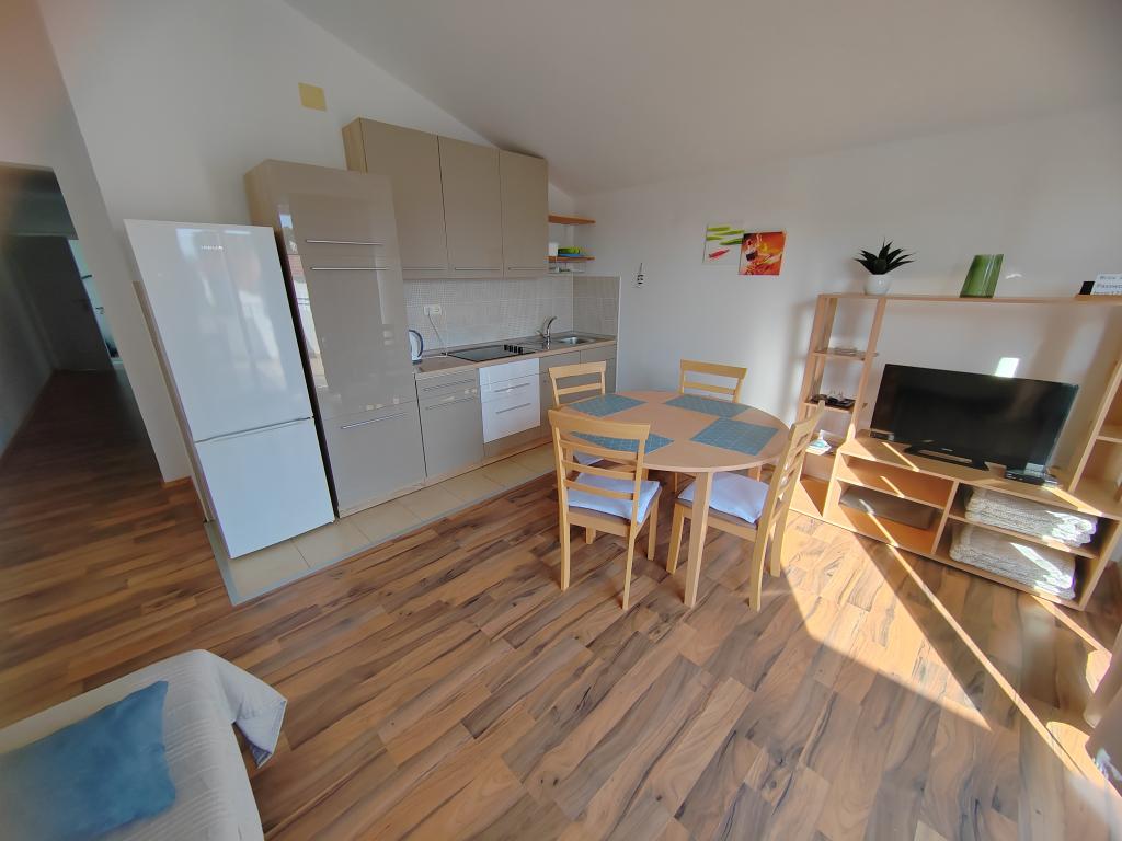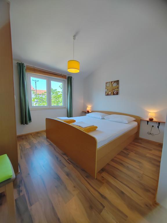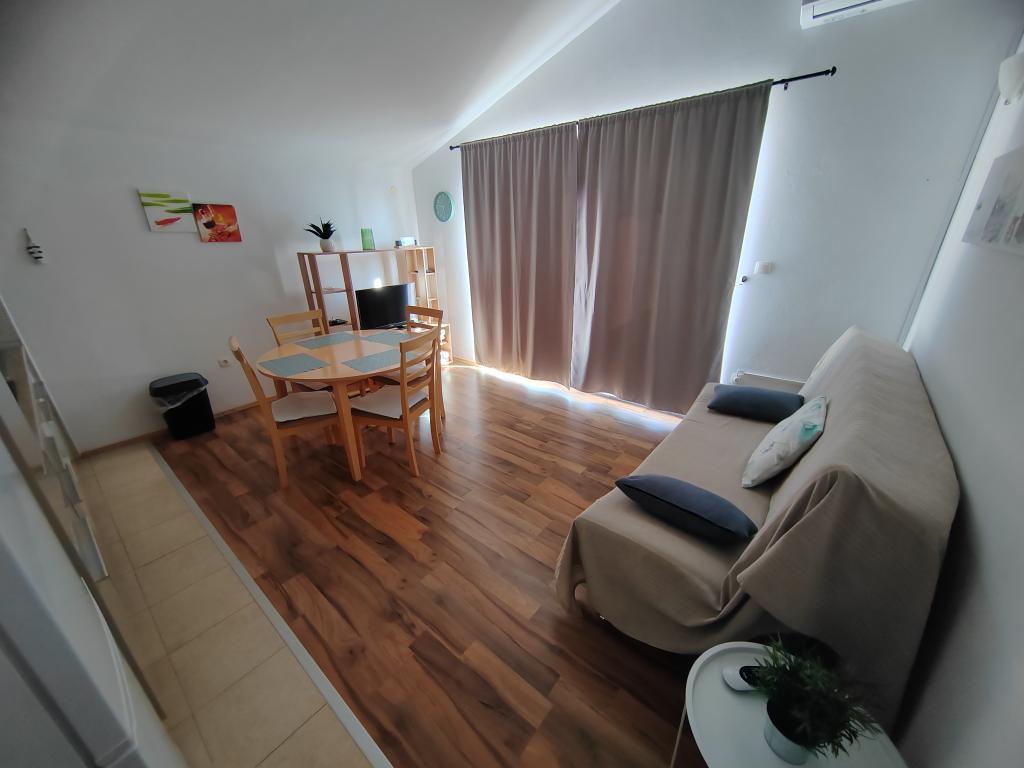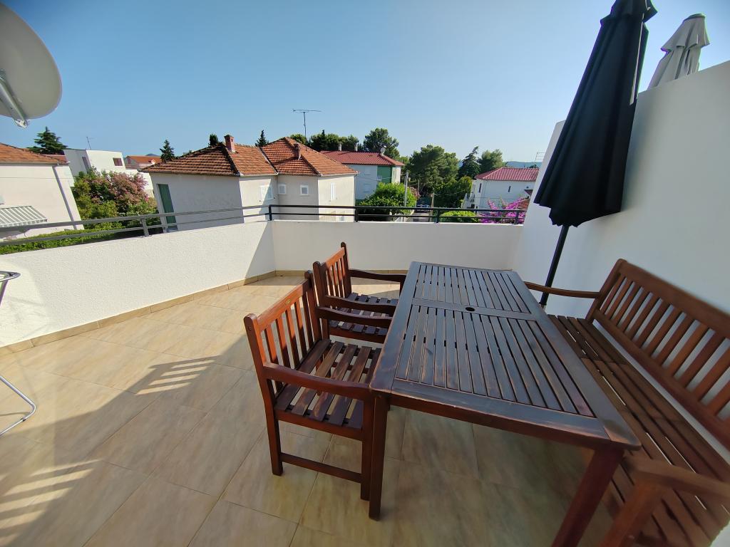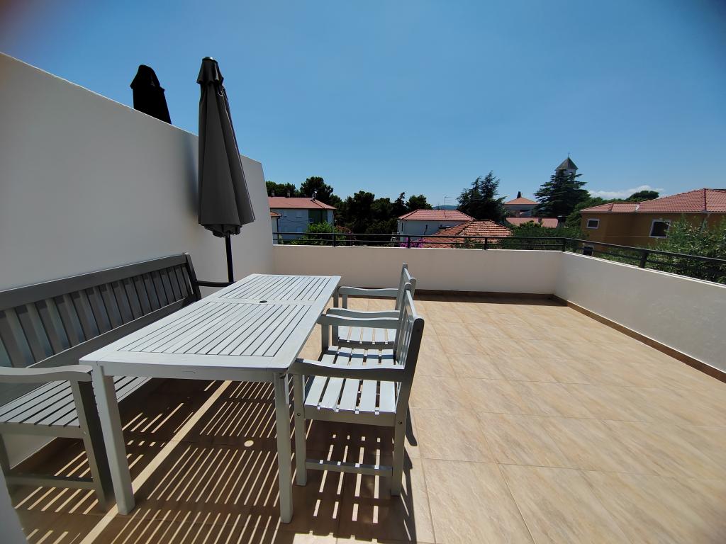 Very spacious and clean apartment, extremely good location, beach, town, shops, bakeries, everything is a step away. Large spacious and shady terrace, huge parking, unobtrusive and friendly owners. We definitely recommend it!
