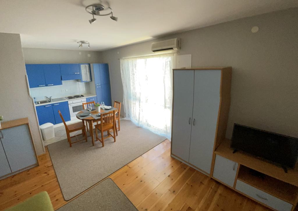 Fully equipped and modern apartments in Sveti Stefan, located 300 m from the sea. The facility is located 10 minutes walk to the center and beach. The apartments are large and spacious with two bedrooms, bathroom, kitchen and living room from which exit to the terrace. Secured parking.