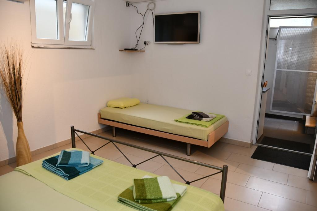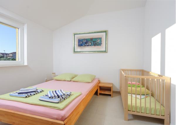 The entire upper floor of a family house is for rent, with internet, air conditioning, TV, two bedrooms with bathroom, living room with kitchen and terrace, covered parking space, grill, bus stop in the center of Filip i Jakov, 250m walk to the beach, 100m to shops, restaurants, pharmacy, shopping center 500m. The beach is sandy, one part fine sand, free, there are various activities for young people and children and restaurants. Nightlife: walking along the sea, music in restaurants or on the waterfront, for children an amusement park and train "Tomica and Friends", 3km Biograd na Moru for even more fun or 26km Zadar. From Filip i Jakov there is the possibility of a one-day trip to the Kornati Islands, Krka Waterfalls, Vrana Lake, the old town of Zadar, Fun Park in Biograd and even Plitvice Lakes, etc. You don't need a car to stay and relax here, everything can be done on foot. You can come by bus directly to the house or by plane to the airport Zemunik near Zadar (25km). If our owner is not there then usually the guests are alone in the house