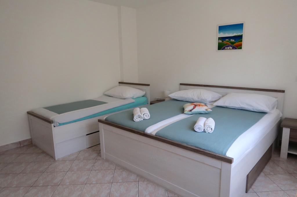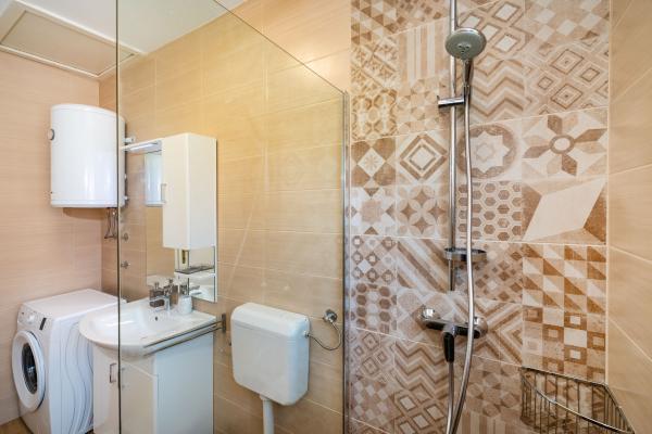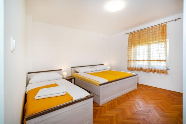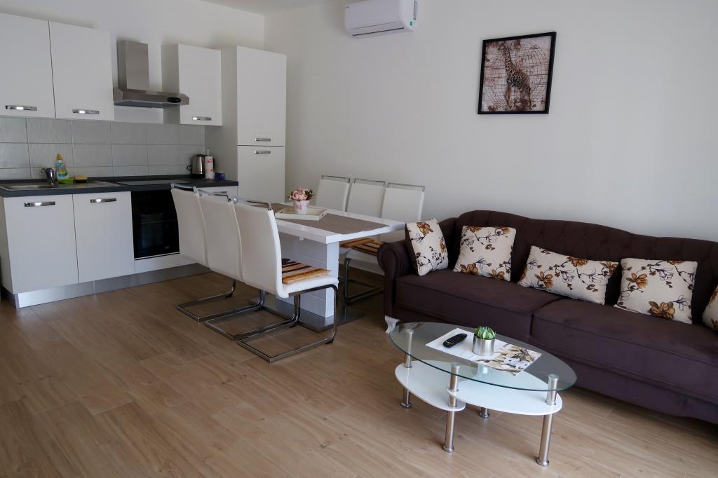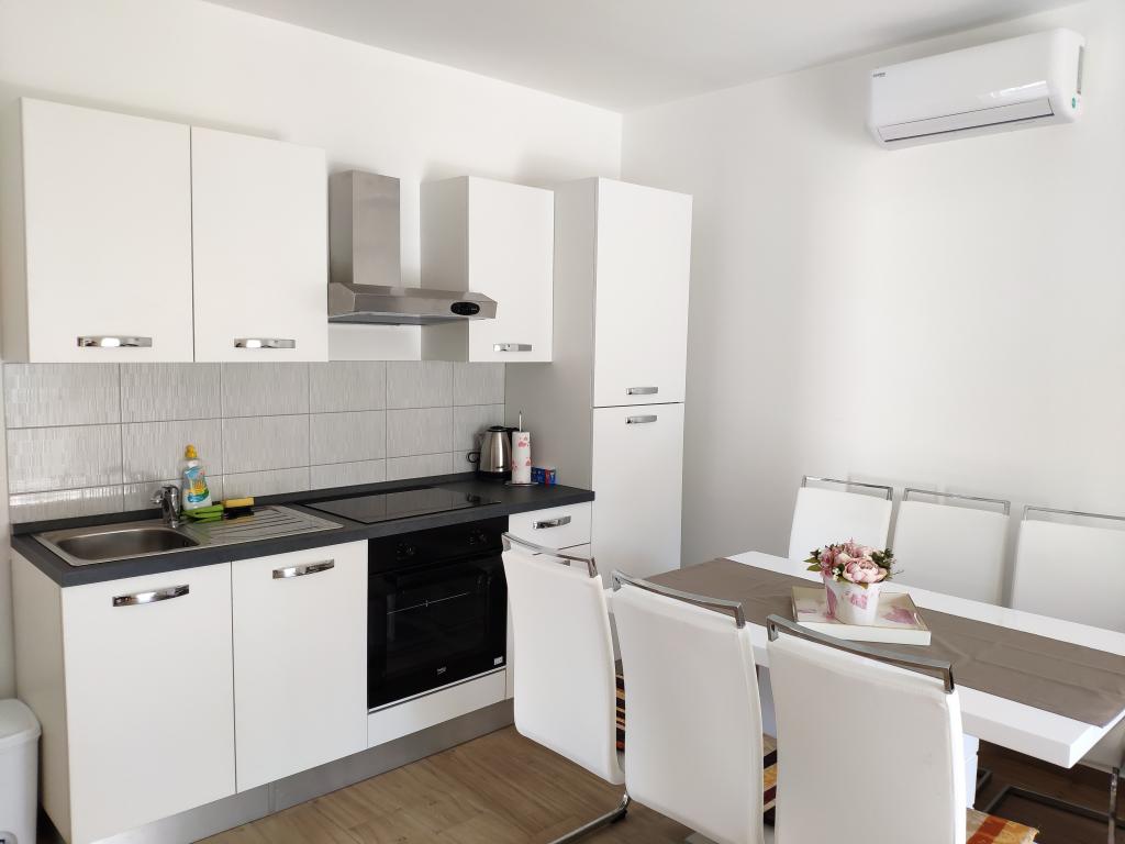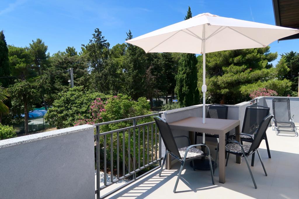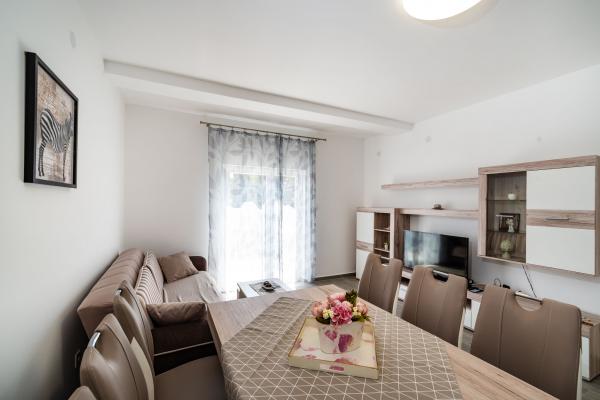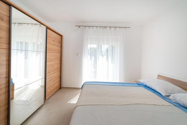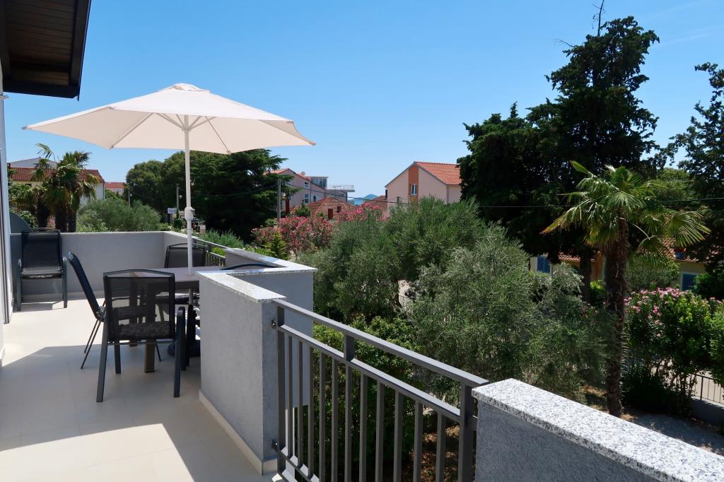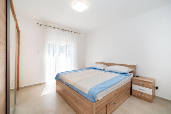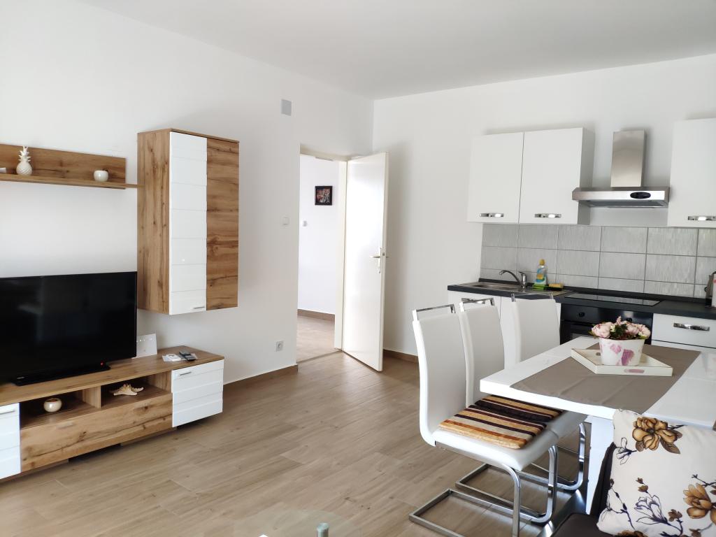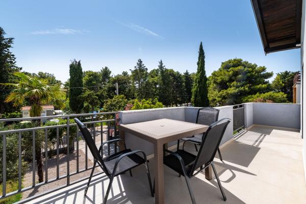 The apartment is modernly furnished and is located in a newly renovated house only 150 meters from the main beach and 200 meters from the center. The rooms are spacious and sunny. Within the apartment there is a large balcony with a relaxing "green" view. Beaches in Filip-Jakov are beautifully decorated, near the apartment there is a concrete, sandy and pebble beach.