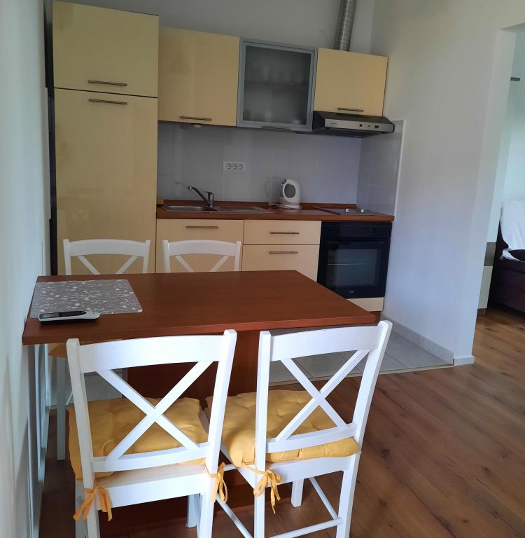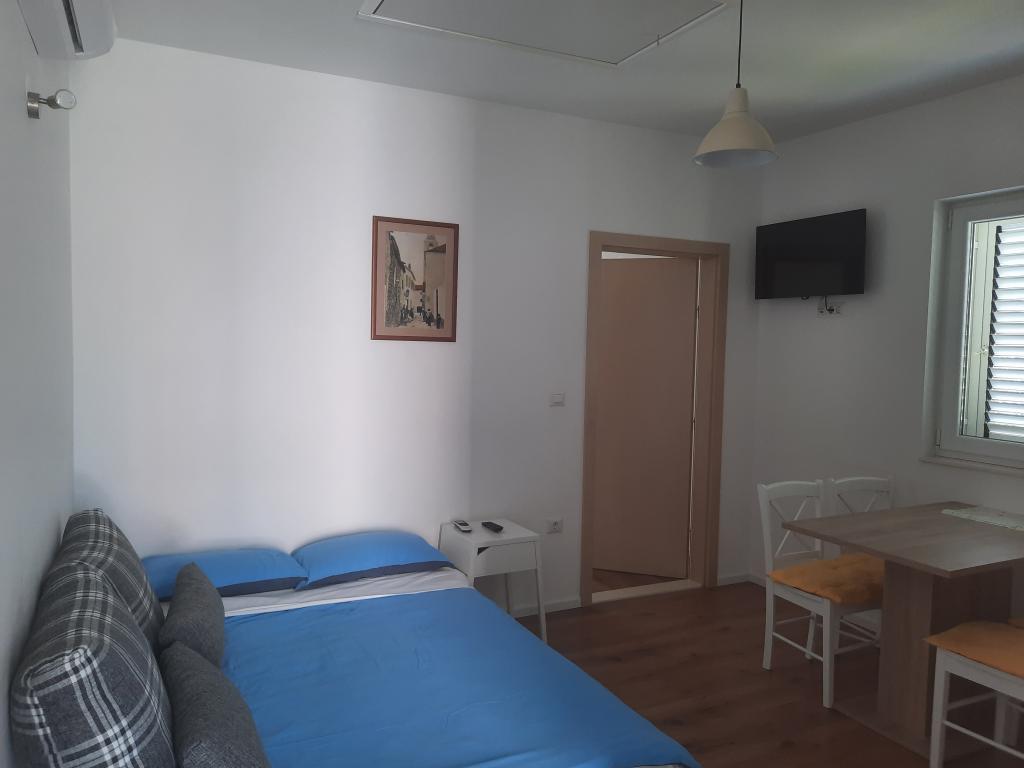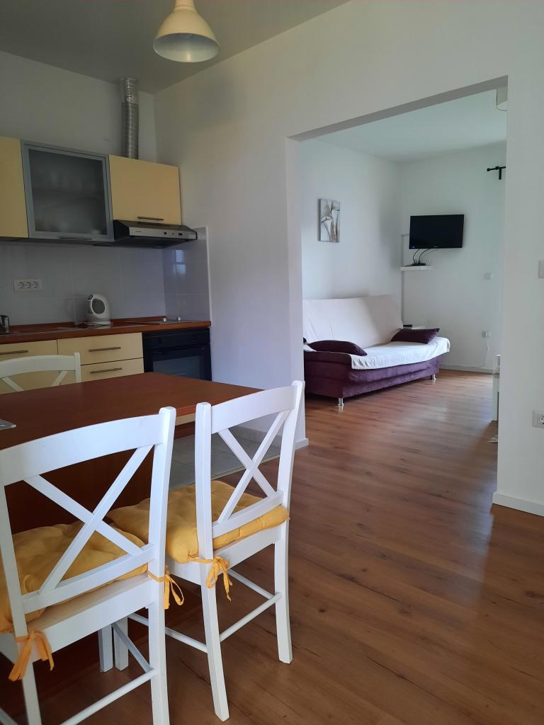 One bedroom apartment (APP 1) and large studio apartment (APP 2) with 4 *, both of 38 m2, terrace with sea view, on the 1st floor of a family house. In a quiet part of town, close to sandy and pebble beaches at 100 m distance. Fully equipped. Ideal, comfortable accommodation for two people or a couple with children.