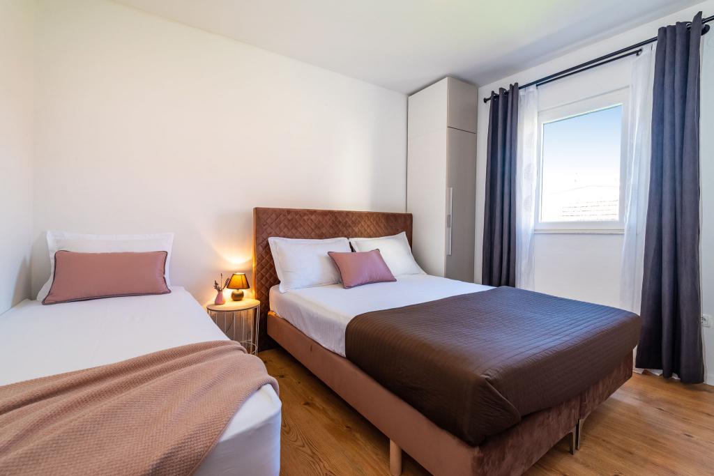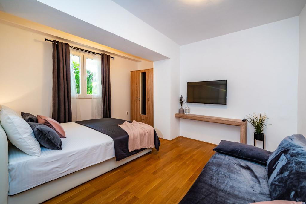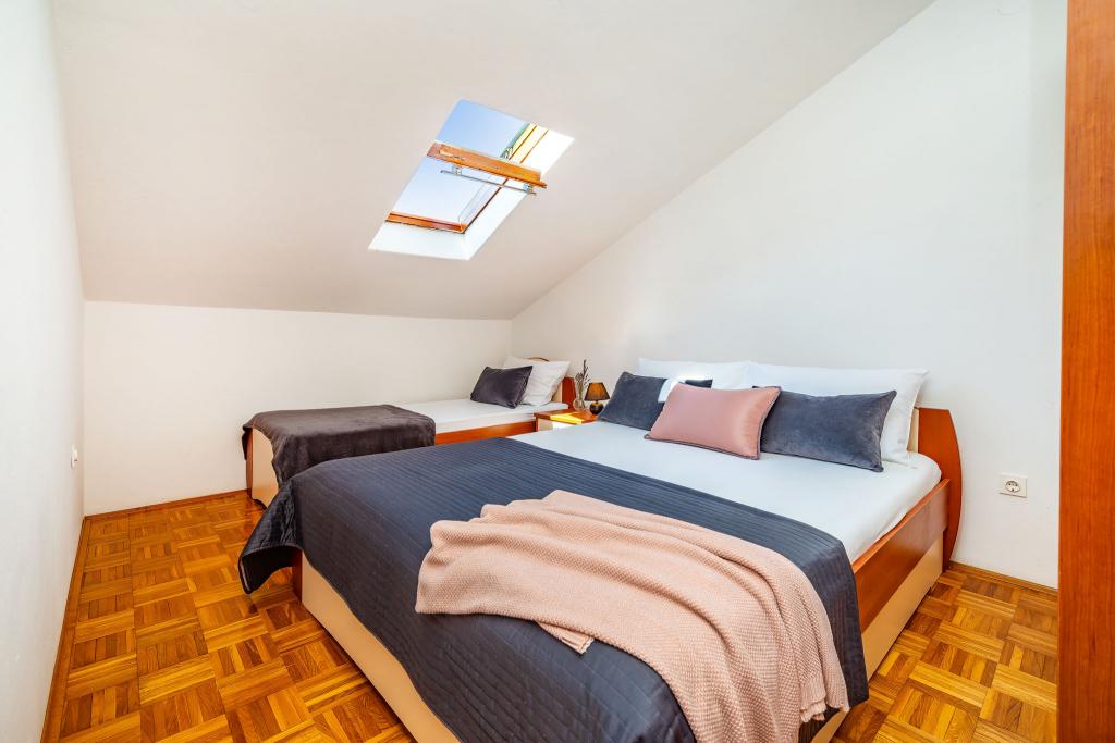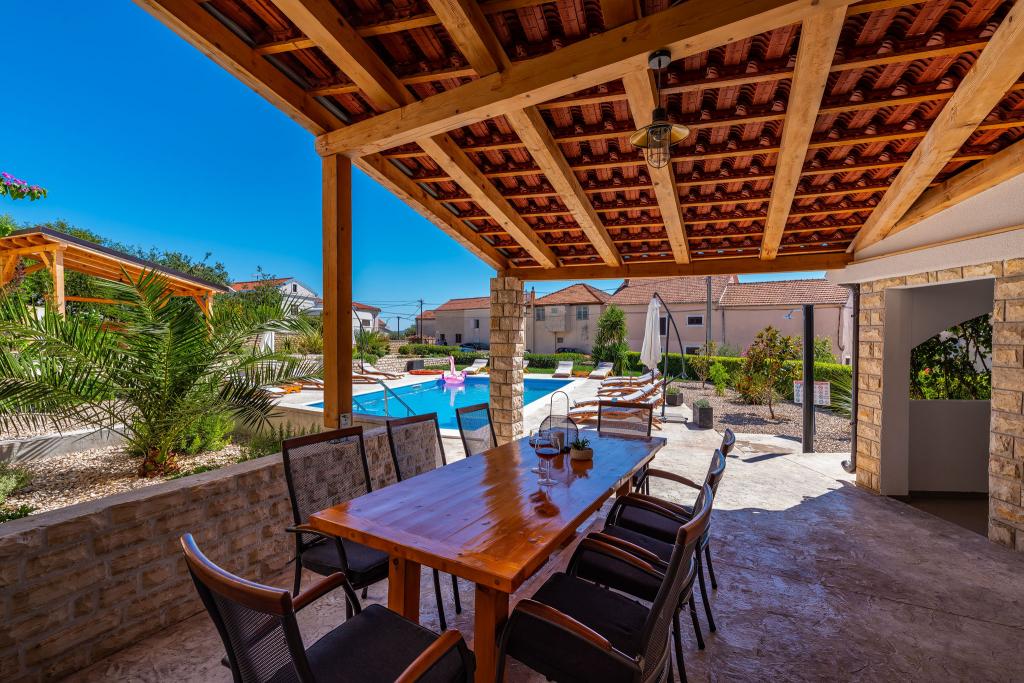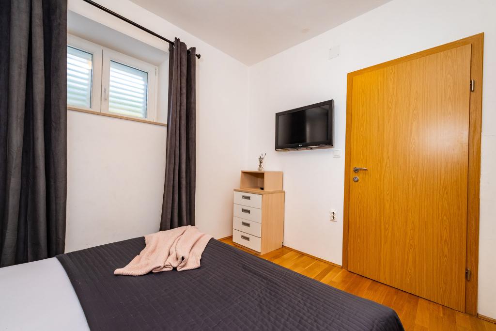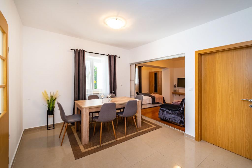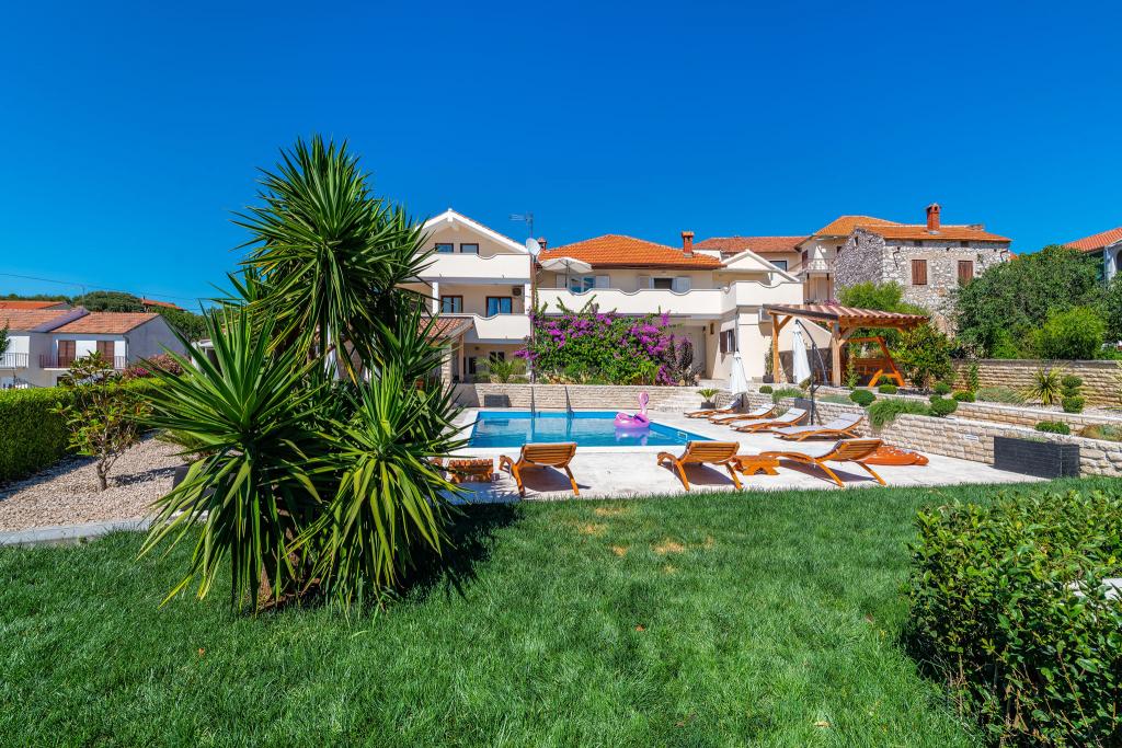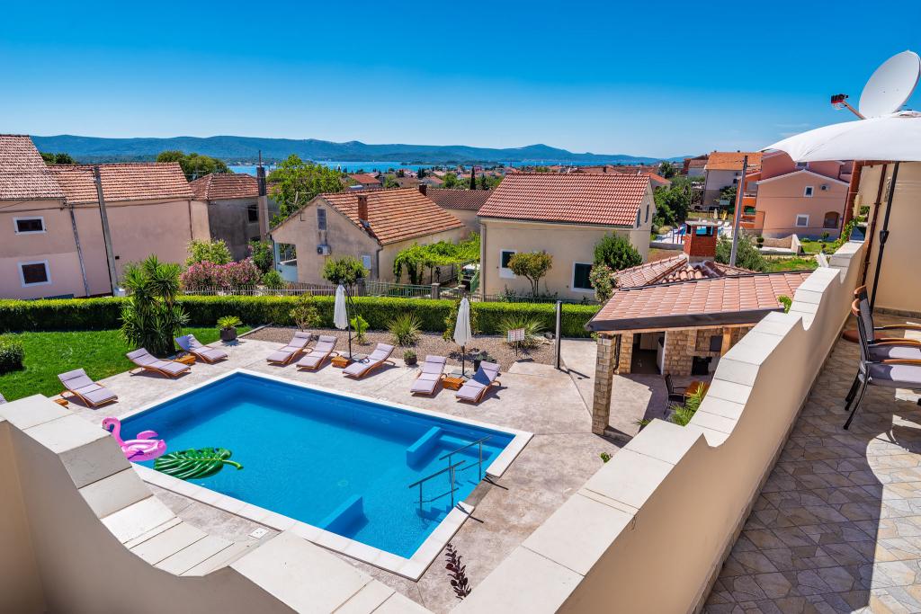 Merita Apartments are located in the village of Sv. Filip i Jakov along the Adriatic Highway, near the sea. In the yard is a pool size 9 x 5 with Jacuzzi, Large area around the pool where there are deck chairs with umbrellas. Grill house with a large table next to it. Covered parking Fully decorated, equipped and air-conditioned apartments with sea views. The facility is located 5 minutes walk to the beach. In the immediate vicinity of the building there is a shop.