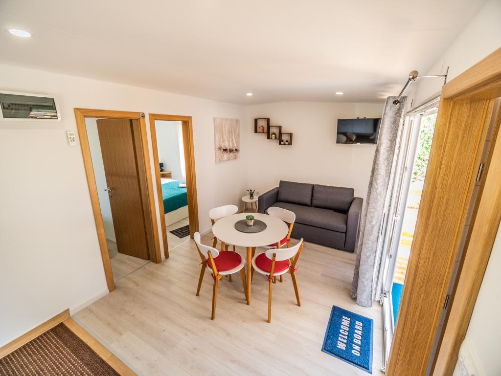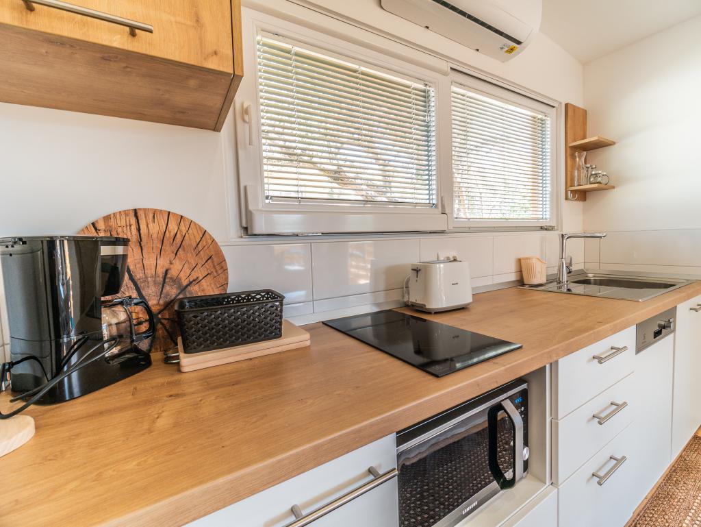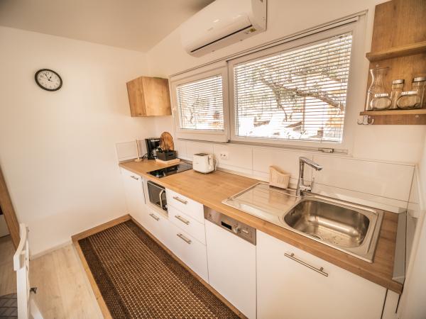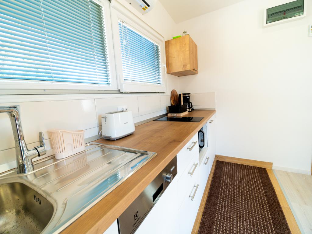 Newly built apartment in a beautiful and quiet area in Sv. Filip and Jakov first row to the sea, sandy beaches about 50 meters away, and the same weave has pebble beaches. The apartment is connected to the family house, the building has its own garden and parking. The town center is a 5-minute walk away, as well as the necessary facilities such as a shop, post office, sports field and a doctor. New in 2019 are 3 prefabricated houses in a row for 4 people, 40 m2 with terrace, highly equipped facilities, air conditioning, 2 bedrooms with bed 160x200, living room, kitchen, bathroom, TV, satellite, W-fi, and protective mesh on the windows (mosquito net). Separate privacy of each building with barbecue and parking. The property has an additional toilet with shower. A washing machine and dryer can be used at an additional cost. A deposit of EUR 100 is required upon arrival, in case of any damage, and will be refunded upon departure.
