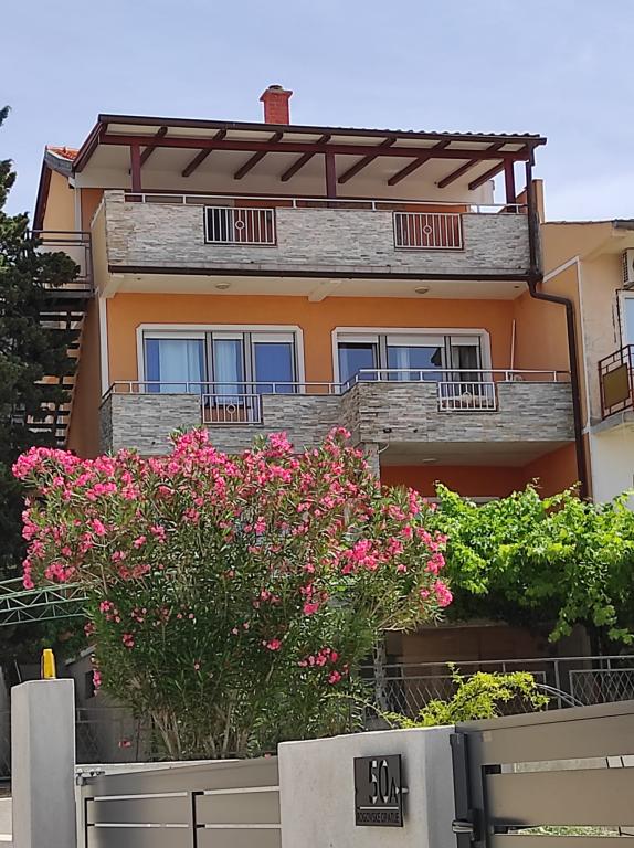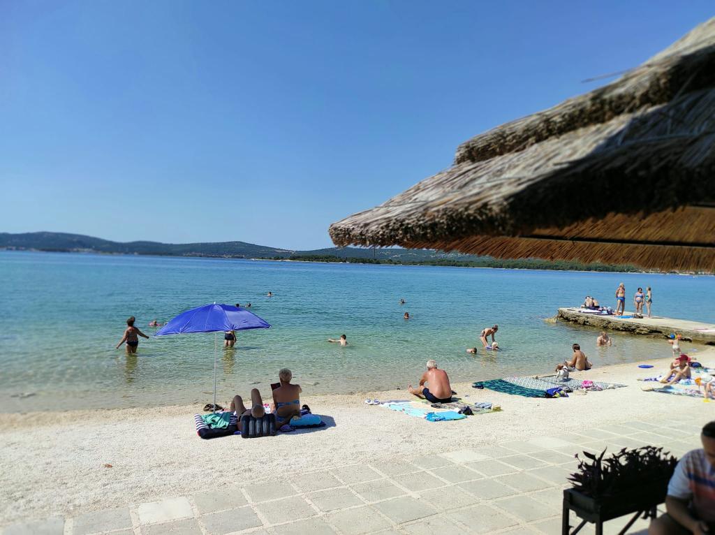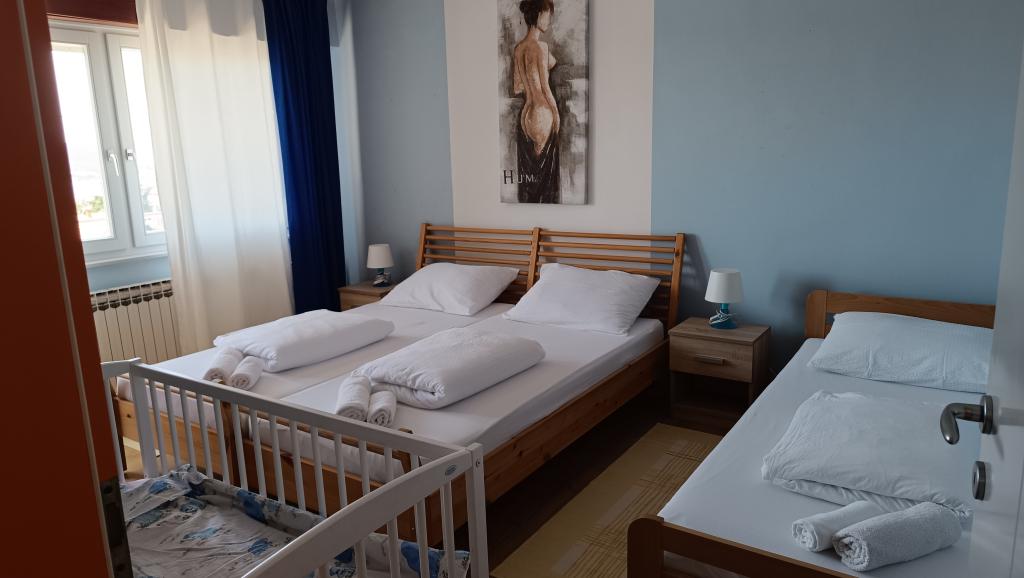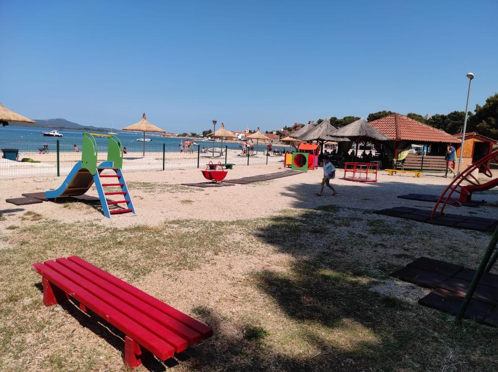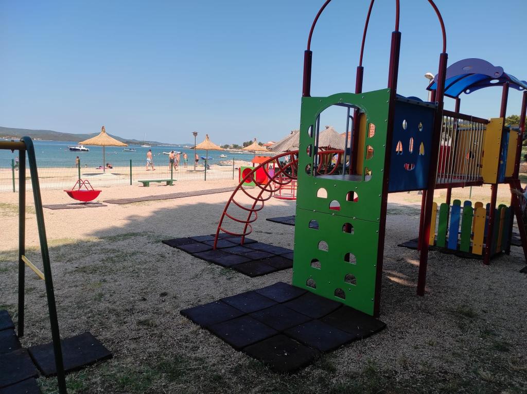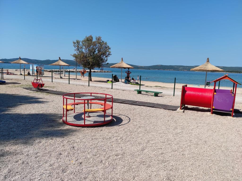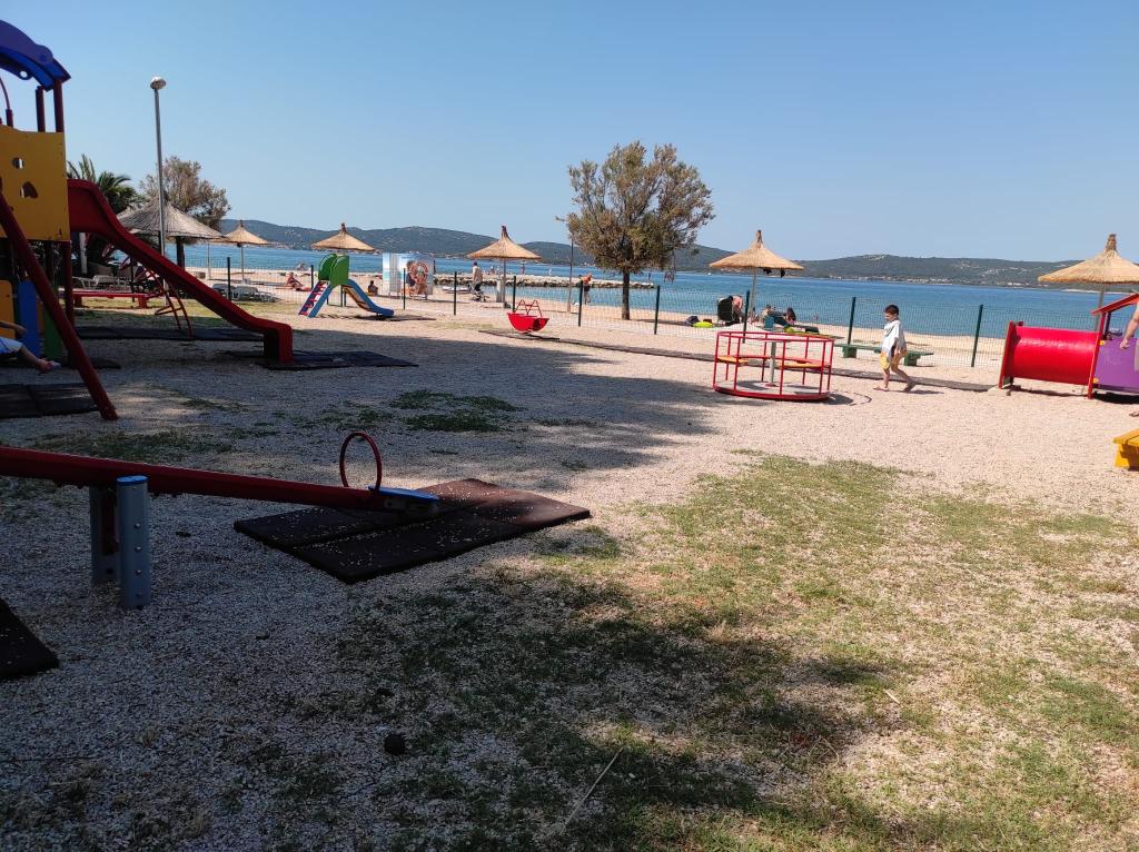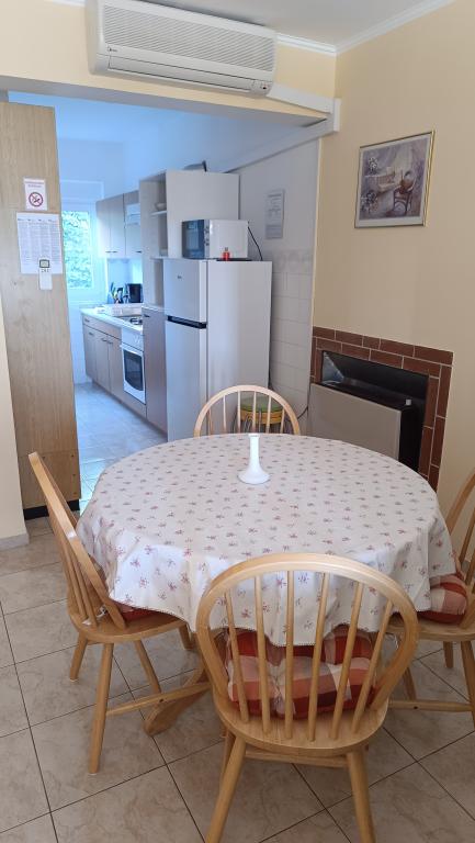 Fully furnished and equipped 60m² + terrace apartments in a quiet area. The facility is located a 15-minute walk from sandy and pebble beaches suitable for children. Also a 15-minute walk away is the center with a market, restaurants, pastry shops, shops (Konzum, Plodine, Tommy market...), clinic, pharmacy, post office, children's playgrounds, etc. In the yard there are ancillary facilities, outdoor barbecue, sink with cupboards containing everything necessary for serving food, table and chairs in the shade. Electric car charging is also available. One covered parking space comes with each apartment. While there is space for other vehicles about fifty meters away from the apartment (free of charge).