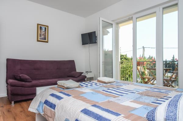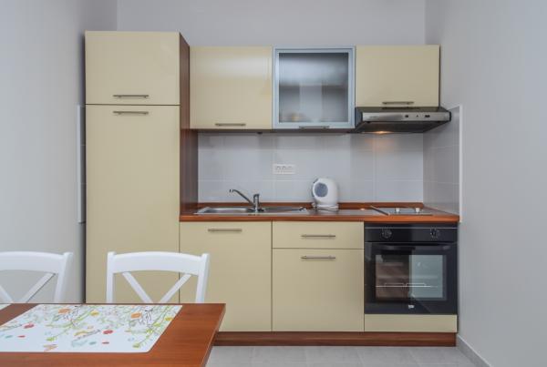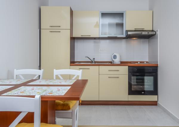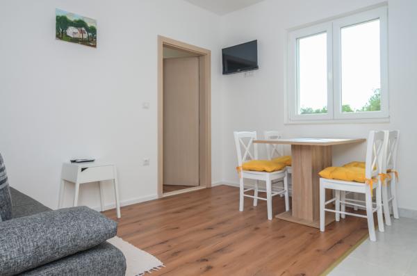 Beautifully decorated, spacious, clean, tidy apartment. Well equipped kitchen. Secured parking space. Sea view from the terrace. Beautiful beach with fast food / cafe bar and the possibility of renting deck chairs and parasols 1 min away. Kind hosts. My family and I are thrilled with the accommodation and are definitely coming back!