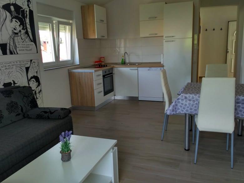 Apartments new, clean, tidy, hostess friendly, unobtrusive, yet affordable. Recommendation for families who do not want to use the car because the apartment is in the center and everything is at hand..from the market, bakery, shops, restaurants, beach ... I have no complaints, all for 5 !!
