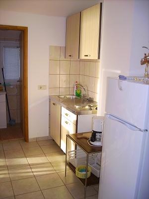 The apartment is just above the sandy beach that has the most shade in the whole town. It has air conditioning. The kitchen is rather poorly equipped, the refrigerator is too small and does not fit a lot of food, a small freezer, and the shelf on the door of the refrigerator was scrapped so that it could not be used. The apartment was poorly cleaned, especially the bathroom we cleaned ourselves before use, a closet in a room full of dust. The yard is large but with no contents so it cannot be used.