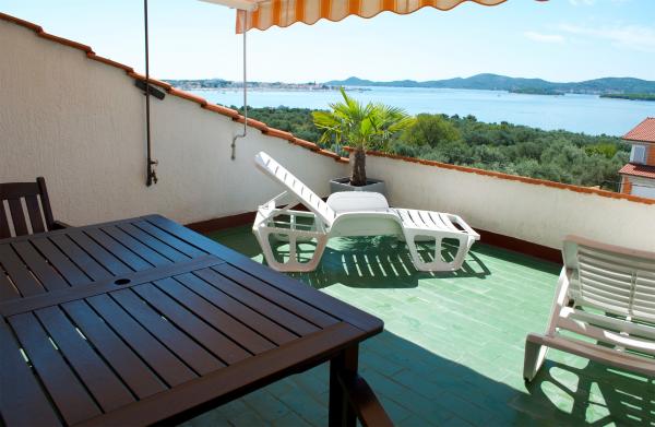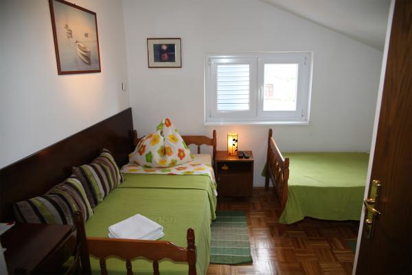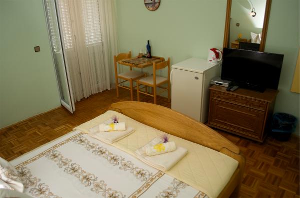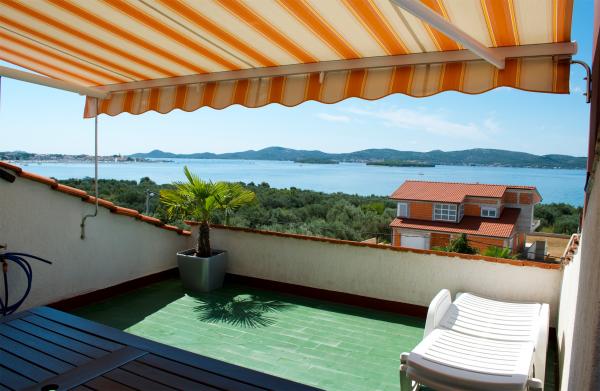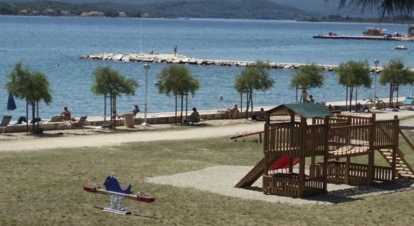 In a quiet area of Sv Filip i Jakov in a house surrounded by flowers, fruit trees in the realm of olives is located our guesthouse. Through our camp Adria are only 2 minutes walk to the beach. From the balcony of all our rooms you can enjoy the beautiful view of the sea and the nearby archipelago. On the ground floor, next to the hall where we serve food and drinks, there is a large covered terrace, where you can relax and refresh. There is a common grill that is available for use. We offer leisure with table tennis and a TV room. Near the house there are several sandy beaches which offer many recreational activities for adults and children. Sv. Filip i Jakov is surrounded by national parks Kornati (17 km), Krka (45 km), Paklenica (60 km) and the Plitvice Lakes, which speaks of the numerous attractions of this beautiful area.