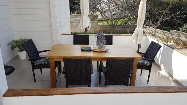 Fully equipped holiday house that is consisted of living room with TV combined with kitchen, two bedrooms, bathroom with shower, terrace and garden with outdoor shower, barbecue, greenery and parking places. Air conditioner included in price. Ideal for a family with children. The house is located in a quiet part of Sv. Filipa and Jakov, near the center, beach, shops and other facilities.
