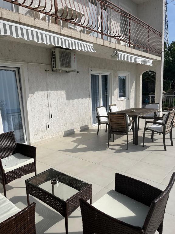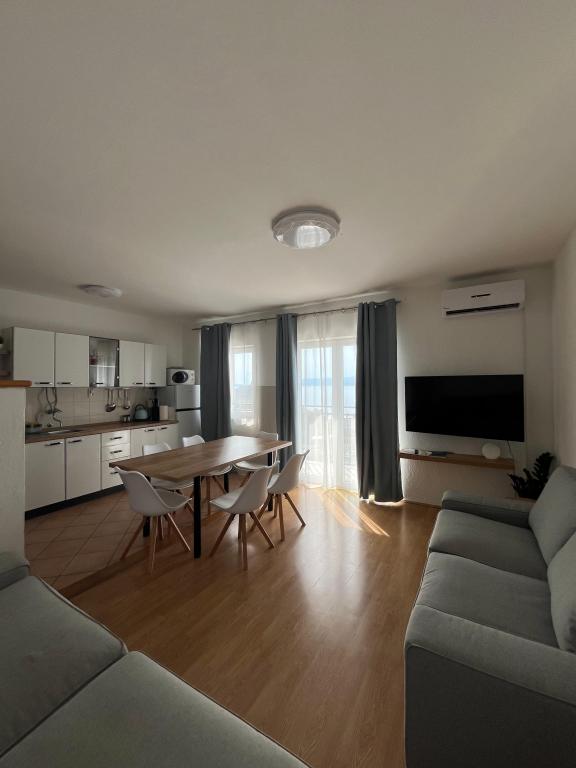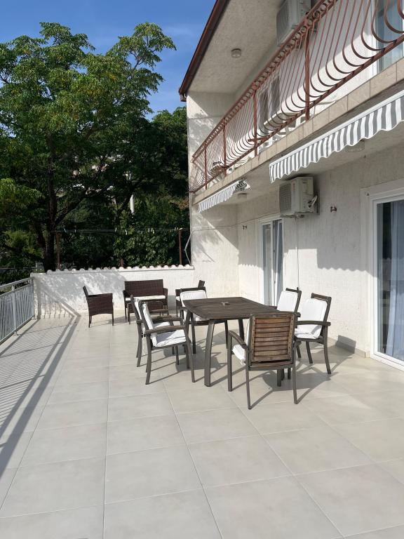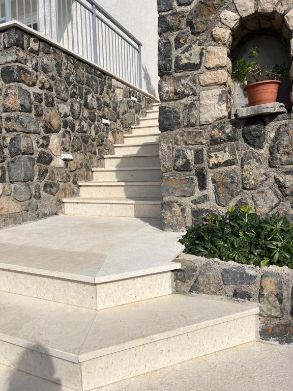 Welcome to our comfortable and spacious apartments located in a quiet and pleasant small town Sveti Juraj, near Senj. Our apartments offer you a peaceful stay near the beautiful Adriatic Sea. The distance to the beach and the town center is 150 meters. Each apartment can accommodate up to 7 people. Each apartment has 3 bedrooms with private bathrooms, a living room and a fully equipped kitchen. The apartments are air-conditioned. Since you will be spending a lot of time outside, our home offers a large area for relaxation with suitable garden furniture. If you want to prepare a relaxing dinner outside, there is also an area with barbecue equipment. There is a large private parking lot in the yard and your cars are safe. Our apartments are ideal for a quiet family vacation with children or a group of friends.