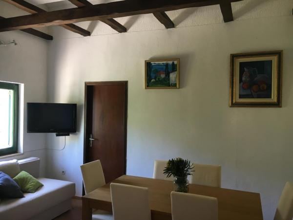 Guests can use their own boat dock on request. The delivery of fresh bread and fruit is available. a supermarket with cool food, a super market and restaurants are 16 km away from the property. It offers free internet and parking. Guests can enjoy a welcome drink at the time of arrival. Guests can enjoy one day excursions to the national parks of Plitvice and Paklenica or to dinghy or camping on the lush mountain Velebit. Airport Krk is 80km away from the apartments and Zagreb Airport is 150km away from the apartments.