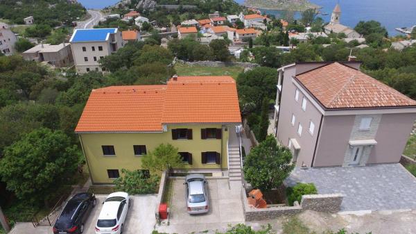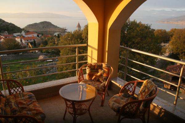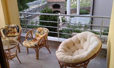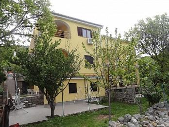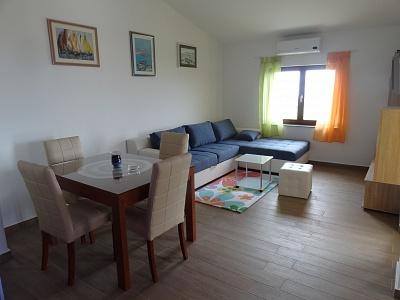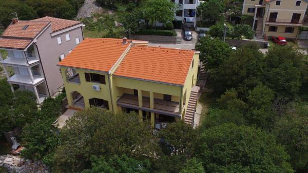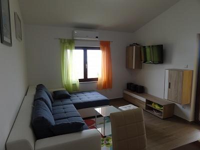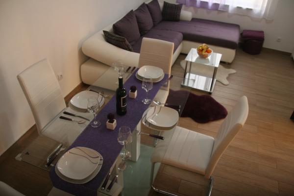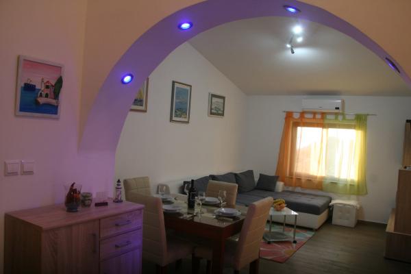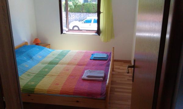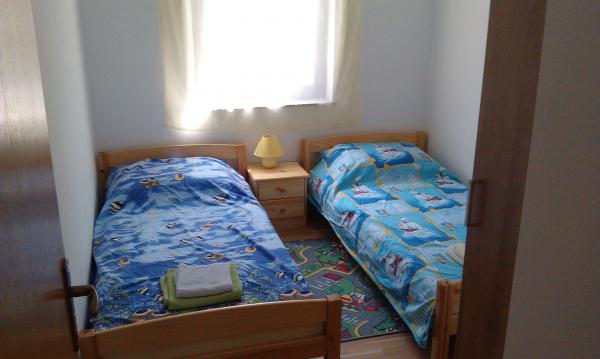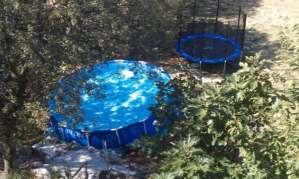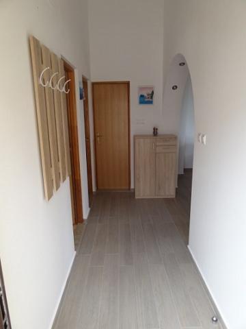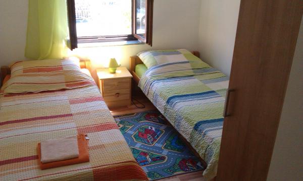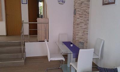 Apartments are located in a quiet part of town, 5 minutes walk to the center, 7 min to the beach. They are in full nature, ideal for peaceful vacations and children's play. Each apartment is modernly furnished, located on a separate floor and has its own entrance. Each has 2 bedrooms, 1 bathroom, fully equipped kitchen, large living room with sofa for 2 additional persons and terrace / balcony with beautiful sea view. In the garden there is a swimming pool and a trampoline - free use. Apartments are equipped with air conditioning, 5 € per day. An outdoor grill is available. Parking is free. Washing machine is also available, first washing is free of charge, each one is charged 5 €. The host is available during your stay. Grill and pizza assistance is also available on request.