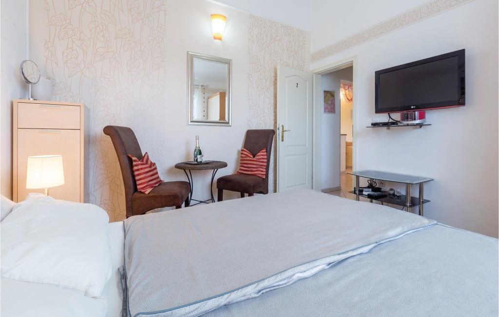 Residential tax is not included in price.Features 2 TV Satellite Internet (free, wireless) Premises: Kitchen: warm. and cold water Living-kitchen Bathroom no. 1 Toilet: hot and cold water, shower Bathroom no. 2 (ID 65069 only) Toilet: hot and cold water, shower Bedroom no. 1 Double Bed (2 Place) Bedroom no. 2 Double Bed (2 Place) (ID 65069 only) Equipment electric plates: 2 plates Refrigerator Napa Freezer compartment: 10 l Coffee machine Microwave Energy / heating Complete thermal insulation Air conditioning h / c: 2 pcs. infield Natural plot Fenced parcel Garden furniture Free parking on the property: 1 seat / BBQ Number of deck chairs: 4 Terrace or similar Covered terrace